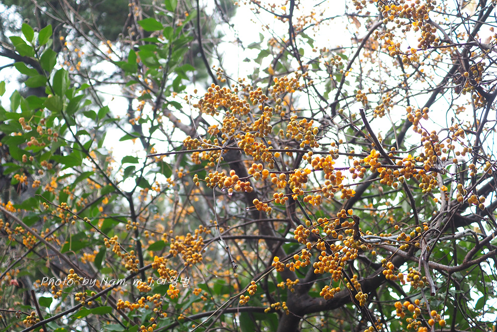 후추등 붉은 열매를 풍성하게 달고 있던 소나무 둥치는 깨끗하게 정리가 되어 열매를 보기에는 글렀다.