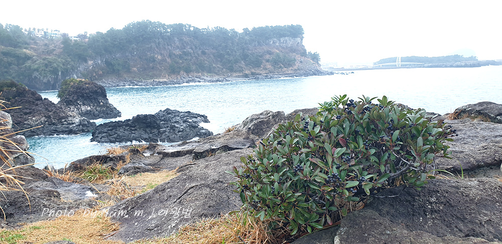 저만치 해안 단애 너머로 새섬으로 건너는 다리가 보인다.