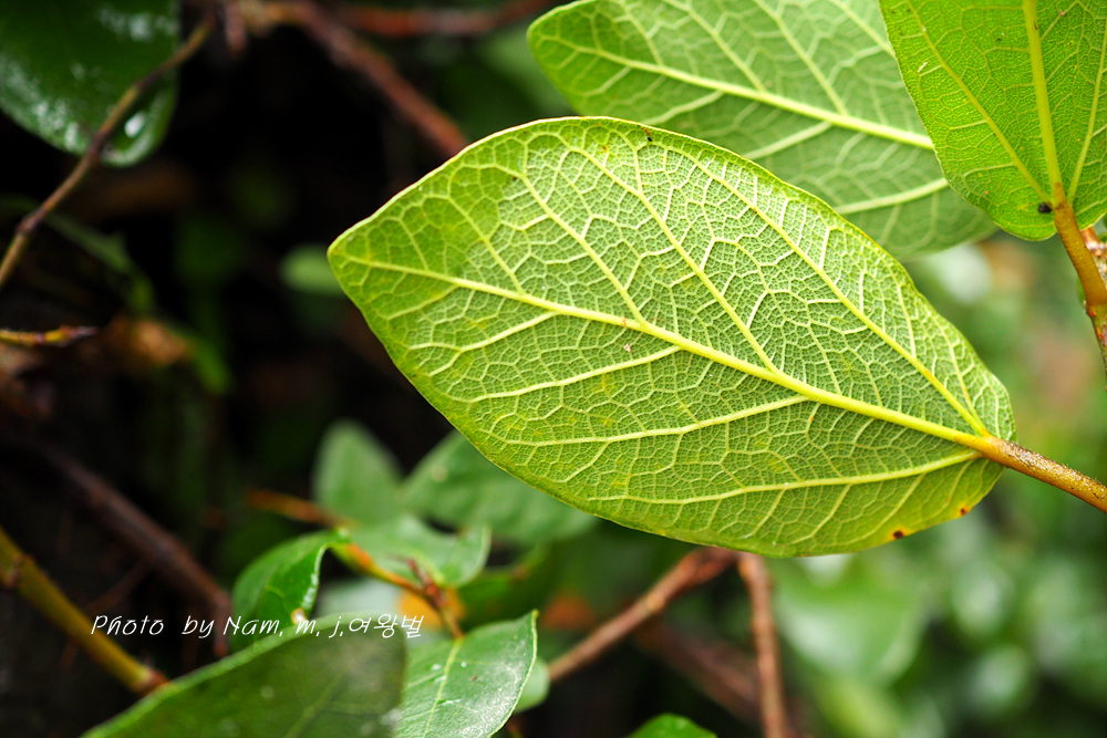 난형, 타원형, 잎맥이 들어감. 엽맥1-5쌍 |
