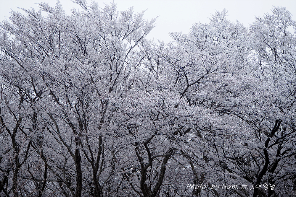 토요일부터 급강하한 기온에다가 비도 오락가락하면서 안개도 출몰을 하더니 이렇게 멋진 상고대를 만들어 놓았다.