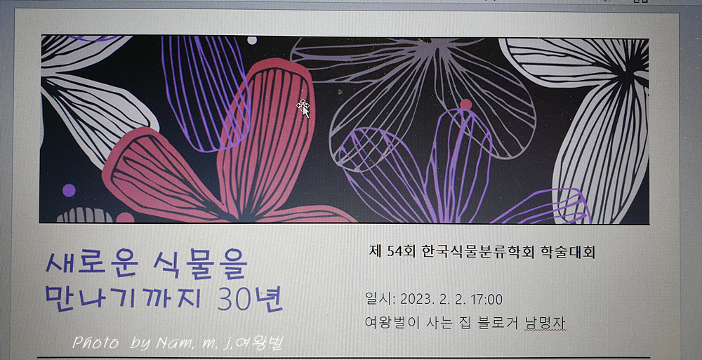 2022년 1월 53회 학술대회 때에 일반회원으로서 그 동안 식물과 접해오게 된 이야기를 발표해 달라고 요청을 받았더랬다.