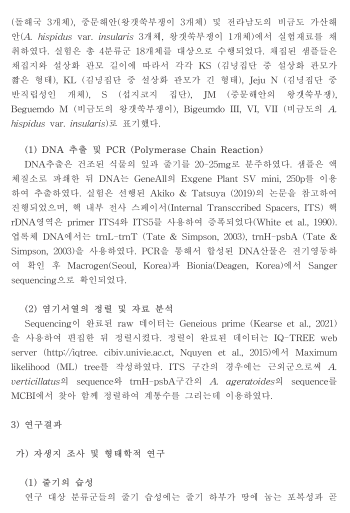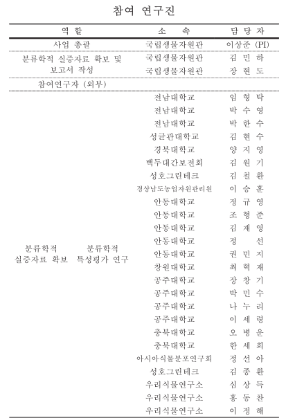 한반도 고유 식물종에 대한 분류학적 특성평가 연구 (2021년도) 국립생물자원관 일부 발췌