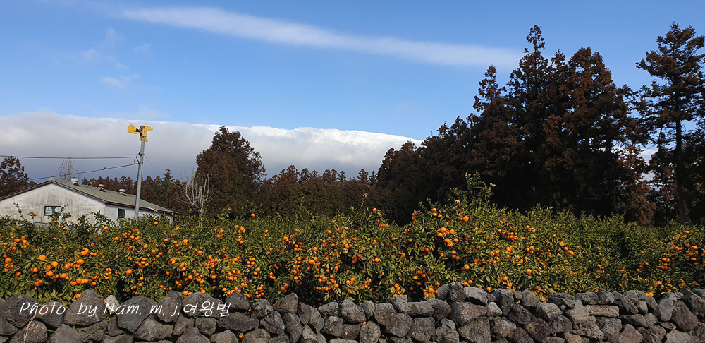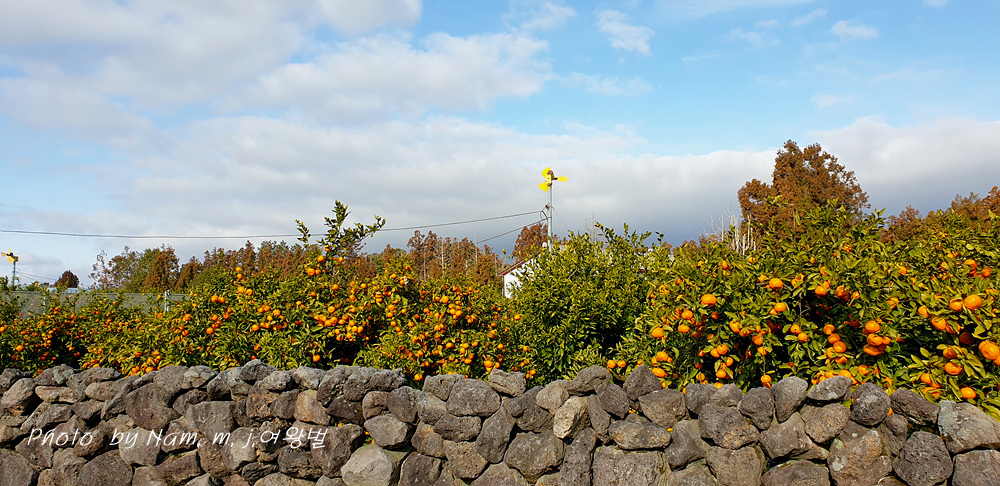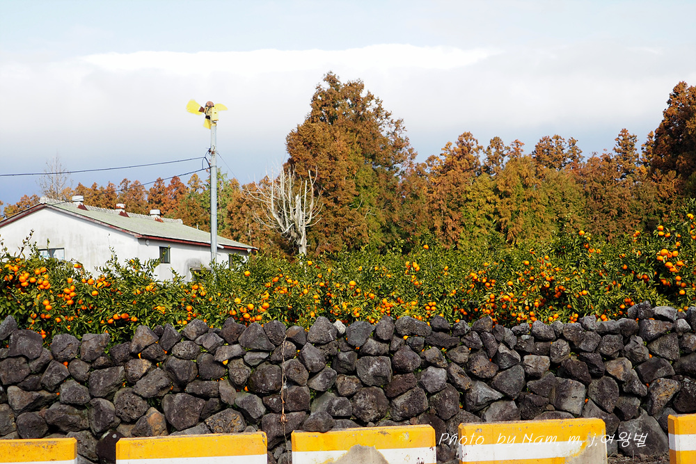 한적한 마을 소로를 달리다가 돌담과 어우러진 귤밭의 정경에 급히 차를 세웠다.