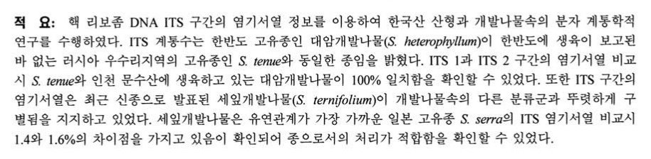 "분자생물학적 자료에 의한 한국산 개발나물속의 분류학적 고찰"(2010)에서 확인할 수 있다.