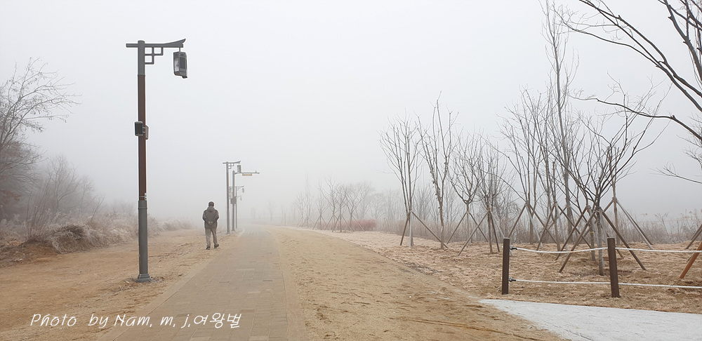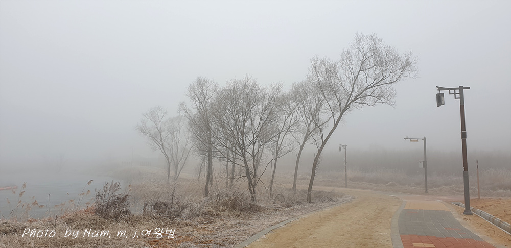 비가 온 후 날씨가 푸근해서 안개가 많이 생기더니