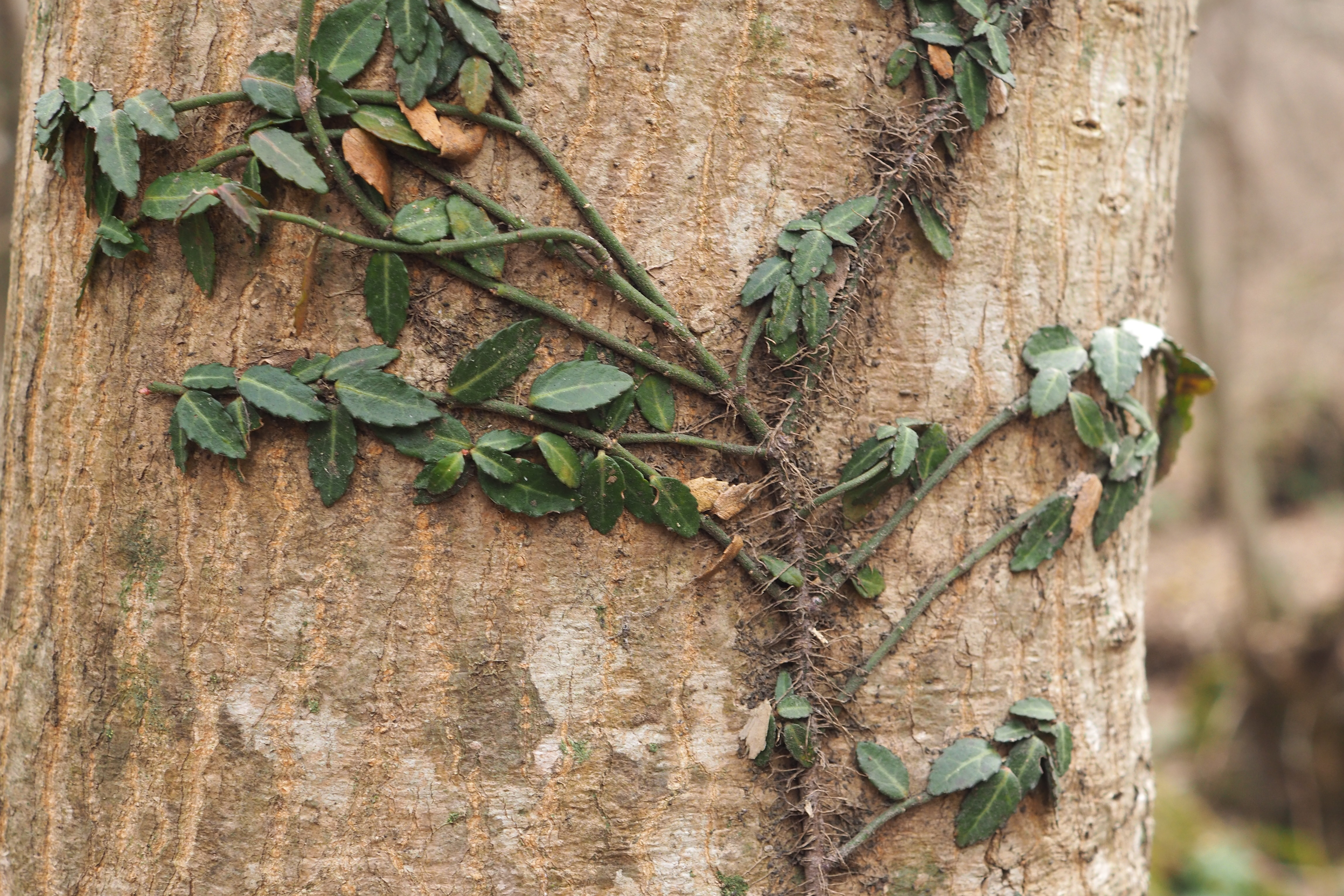 나무 기둥을 기어오르는 작은 잎이 신기하다는 동생에게 줄사철나무라 알려준다.