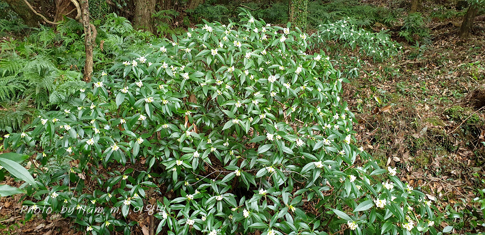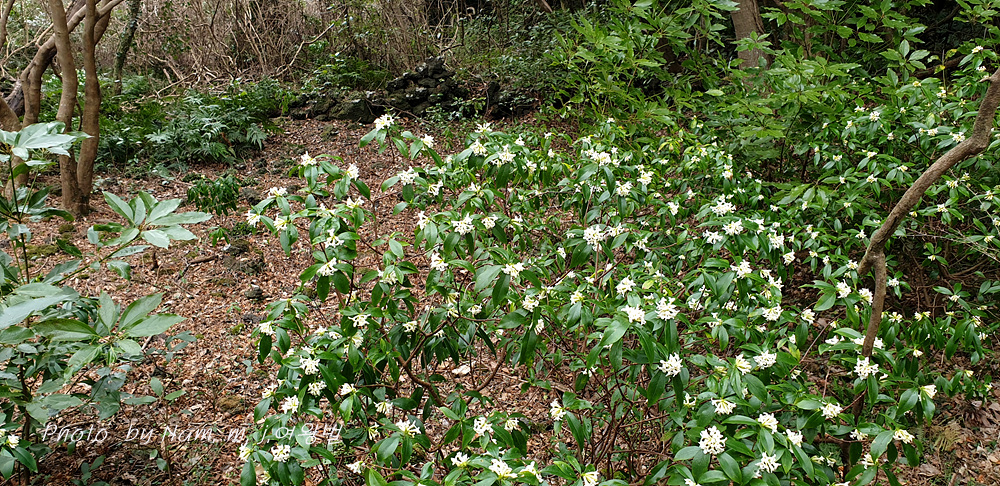 곶자왈 다른 쪽 입구로 들어가서 만난 백서향이다.