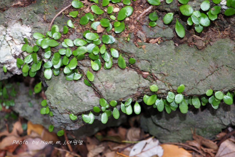 콩짜개덩굴과 함께 섞여 있기도 하고 어떤 잎은 콩짜개덩굴처럼 둥글게 나타나기도 하였다.