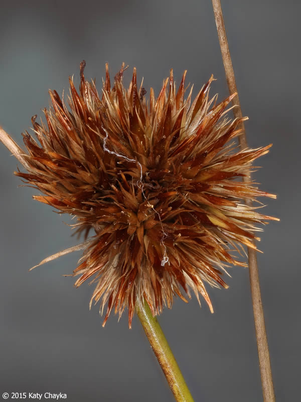 뿌리줄기 길고 마디가 비후하다. 구 모양의 화서에 25~100개의 꽃이 달리며 포는 없다.