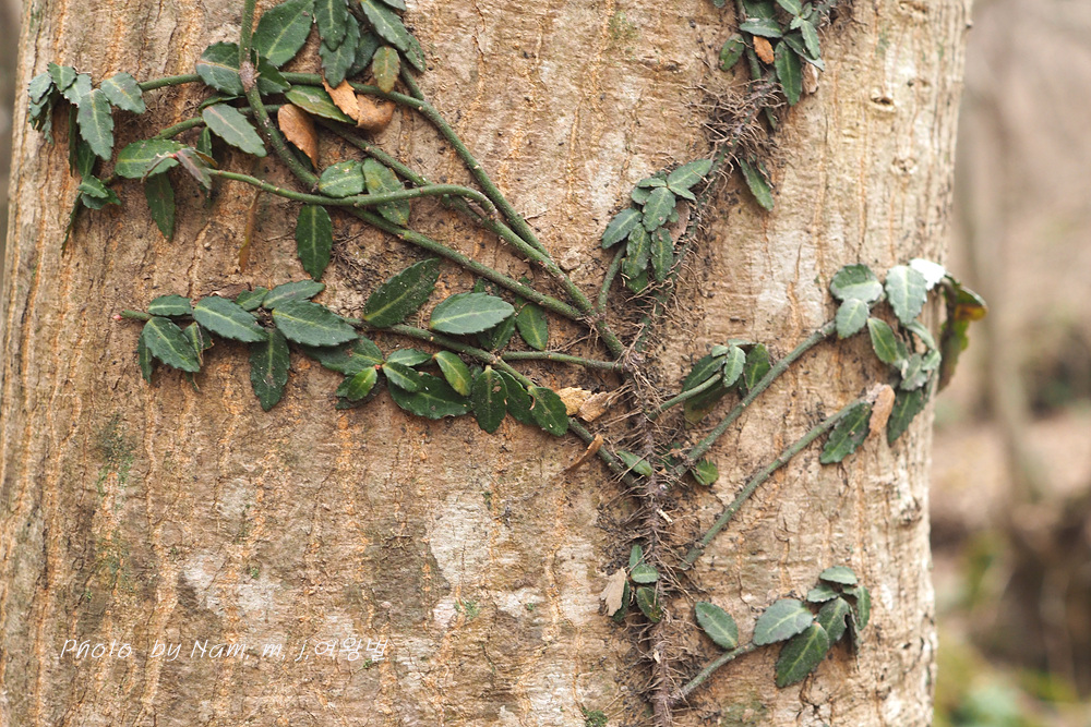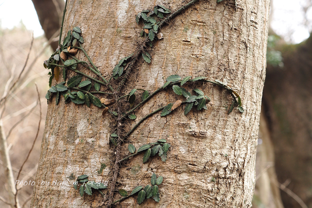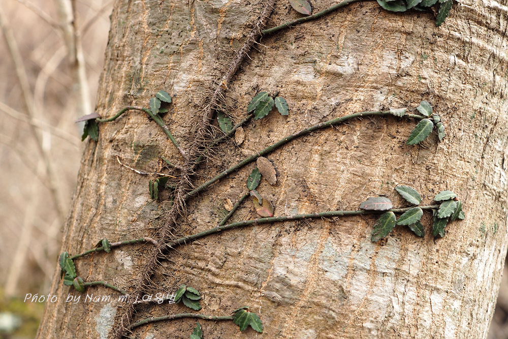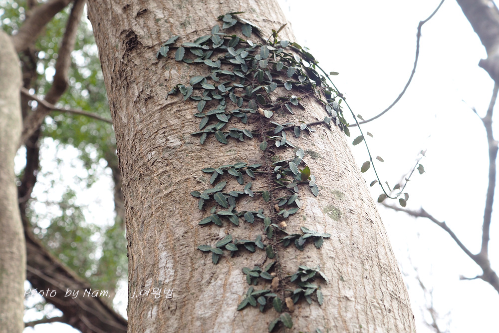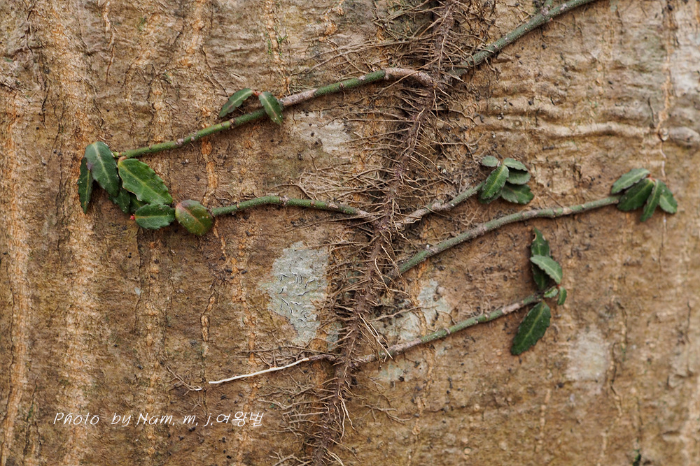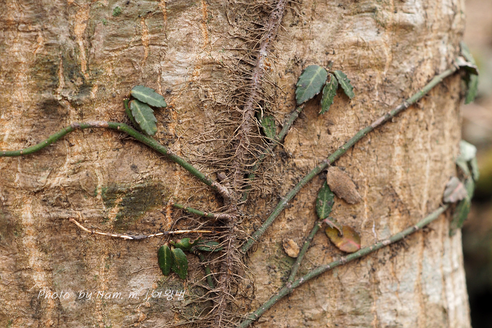 줄기에 잔뿌리를 내려서 부착시키면서 나무 기둥을 타고 오른다.