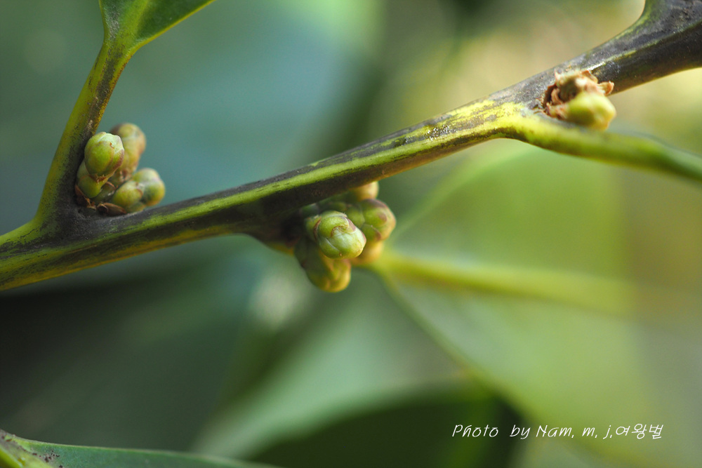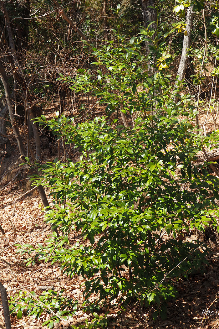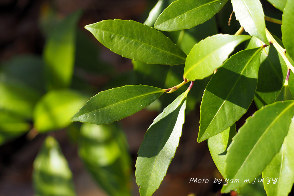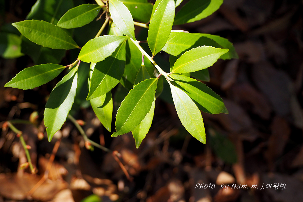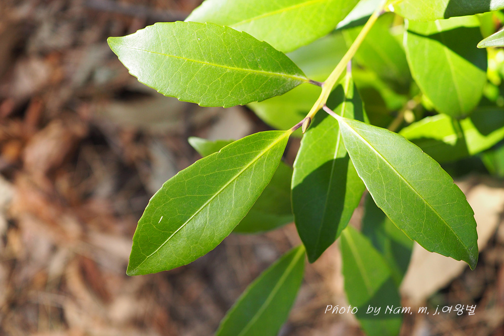 | 꽃은 3∼4월에 흰색으로 피고 묵은 가지의 잎겨드랑이에 2∼3개씩 모여 달리며 꽃대가 없다. 씨방은 3실이다. 잎은 어긋나고 장 타원형으로서 딱딱하며 윤이 나고 엽병이 있다. 가장자리는 밋밋하지만 때로 물결 모양의 톱니가 있다. 열매는 긴 타원형이며 10∼11월에 검게 익는다. 수피는 잿빛을 띤 검은색으로 평평하다. |