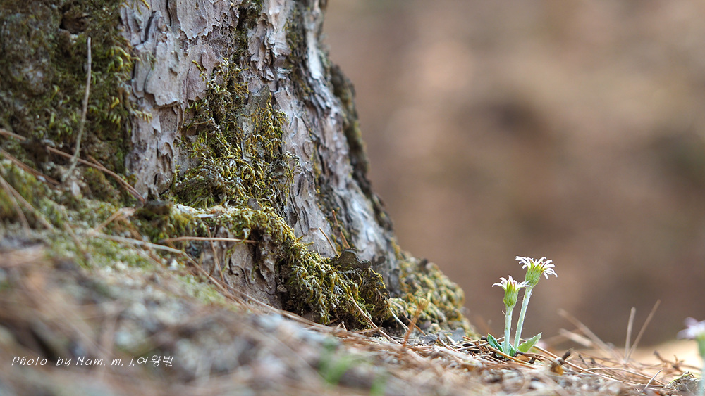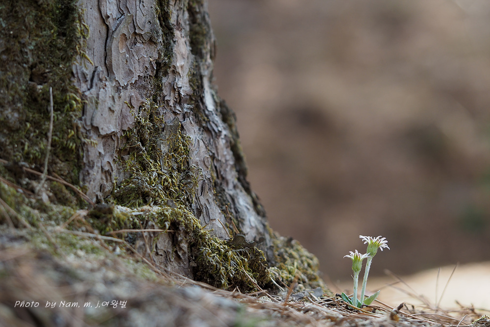 소나무등걸 발치에 하얀 쪼꼬미들이 모여서 수다 삼매경이다.