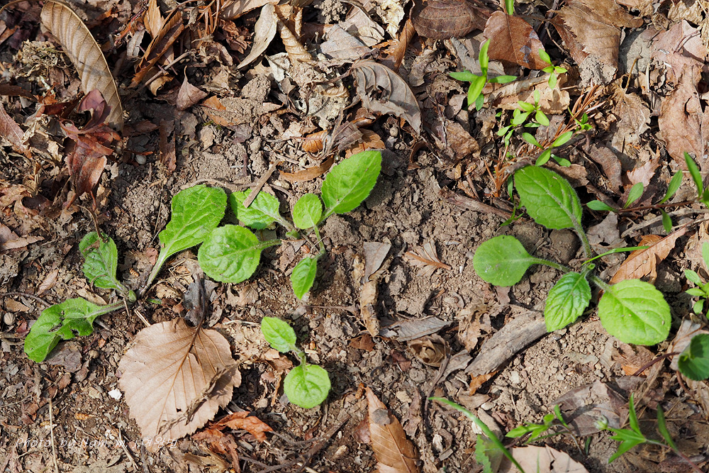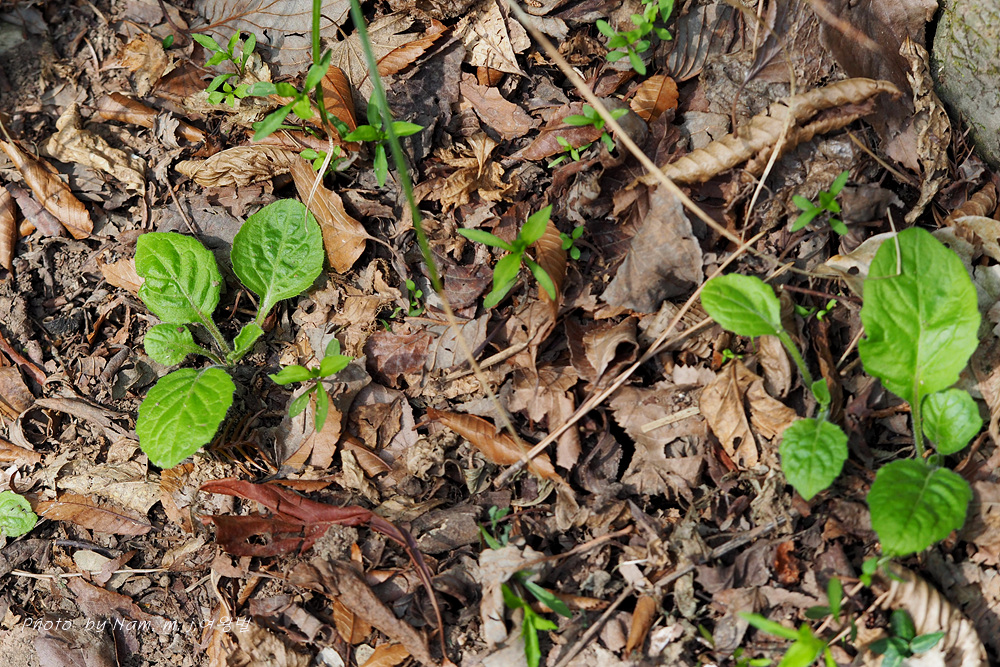 잎자루가 길고 엽신이 둥근 광난형의 어린 싹이 보인다.