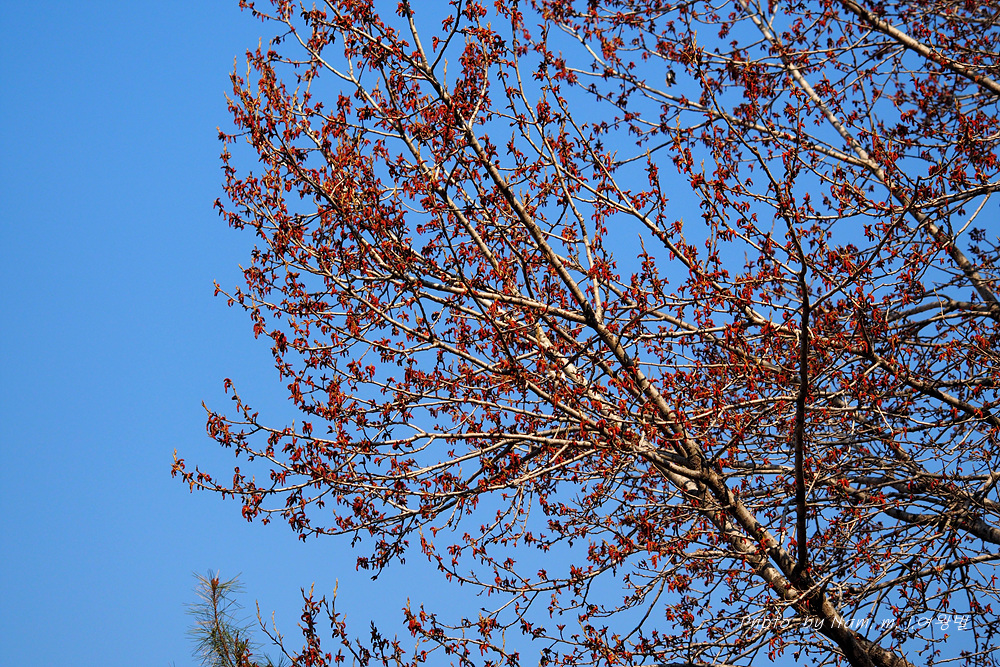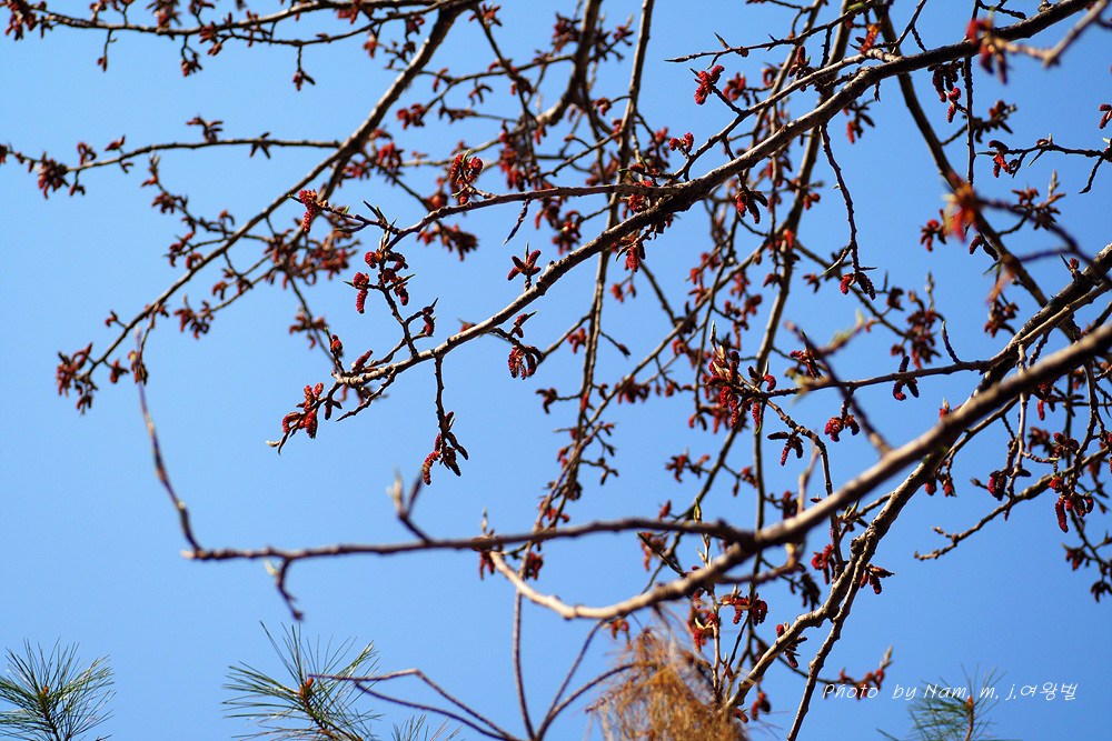 이태리포플라 꽃이 개화 준비 중인 걸 보니 강원도는 강원도인 갑다.