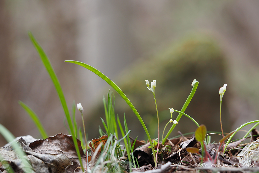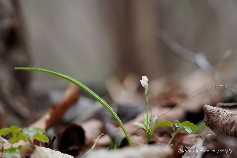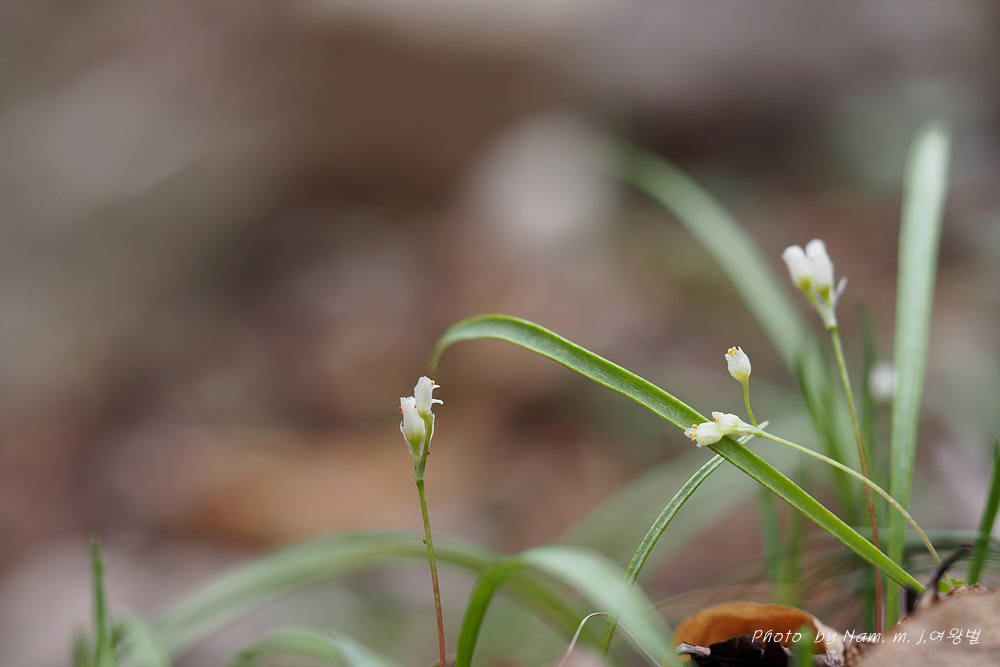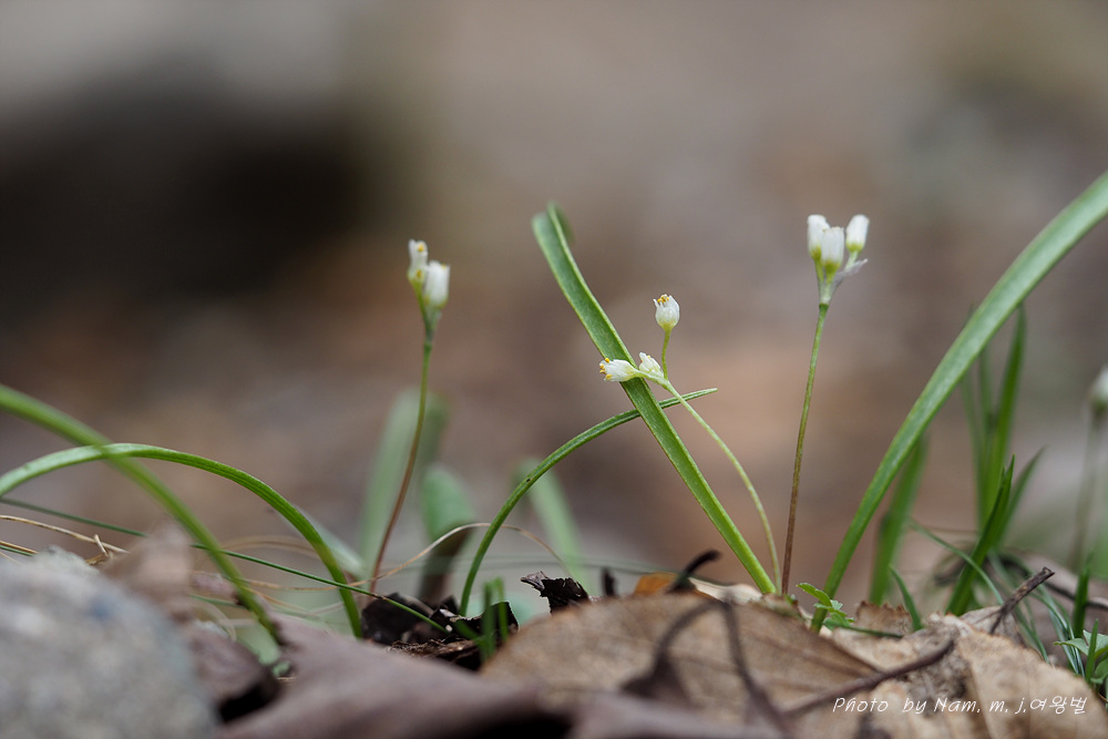 오후의 숲에서 달래가 노랗게 꽃밥을 드러내 보이는 꽃을 피우고 있었다.