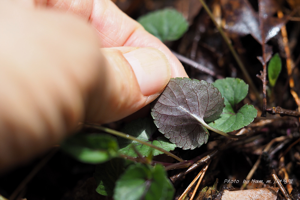 자주잎제비꽃과 비슷하지만 잎맥이 자색이고 낚시제비꽃 처럼 줄기를 발생한다.