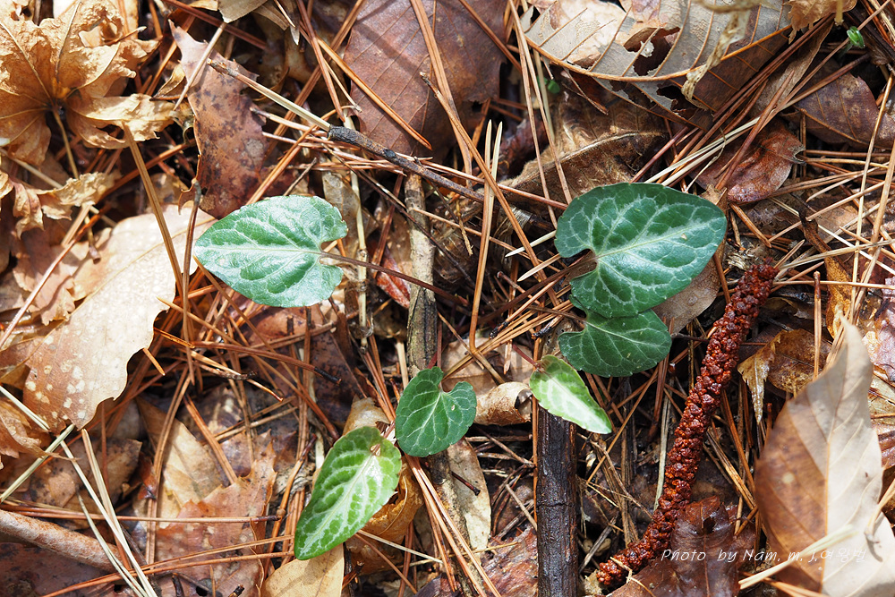 잎 표면이 광택이 있고 잎 뒷면이 자주색을 띤다.