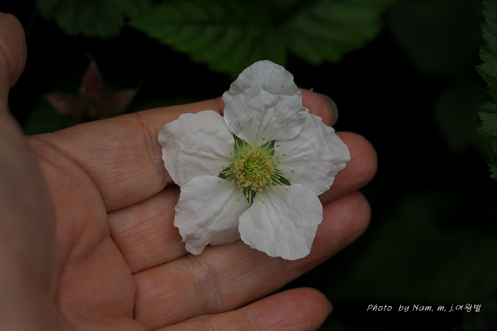 제주산딸기는 거문딸기와 장딸기의 자연교잡으로 생긴 이 녀석은 꽃의 크기는 거문딸기나 장딸기와 비슷하거나 더 커보이기도 한다.