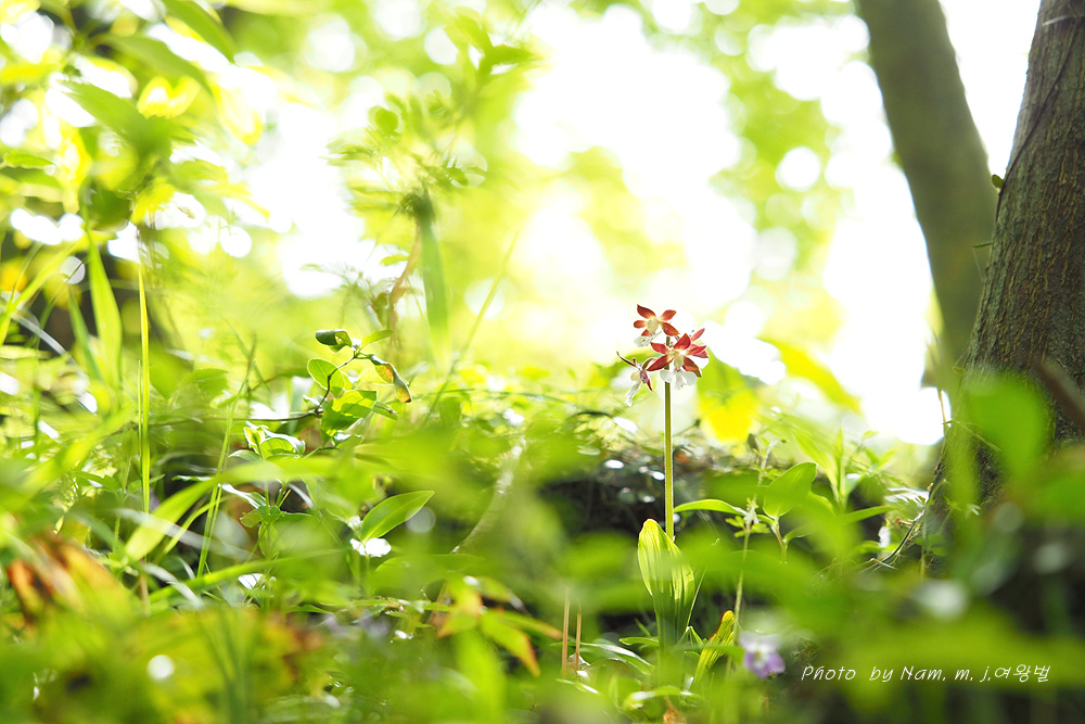 가시딸기를 살피고 숲을 뒤지다가 한 두 촉 꽃을 피우기 시직한 새우란에 반색을 하여 잠시 빛놀음으로 시선을 빼앗겼다.