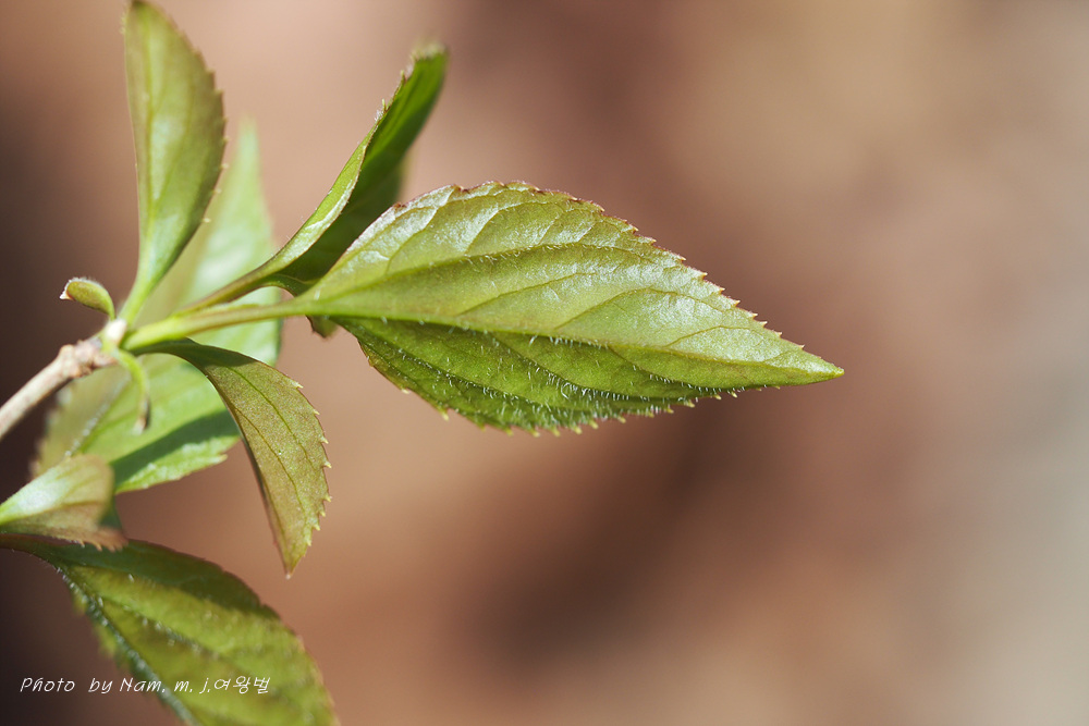 잎 뒷면 맥위에 잔털이 있다.