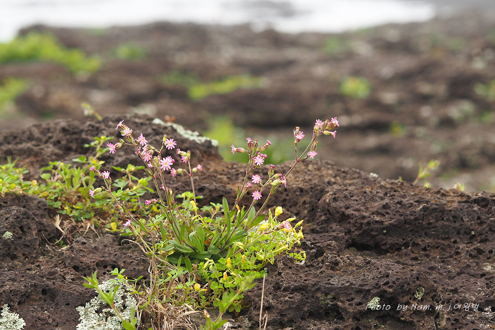 현무암 암반 위 작은 틈에 자리를 잡고 곱게도 꽃을 피웠다.