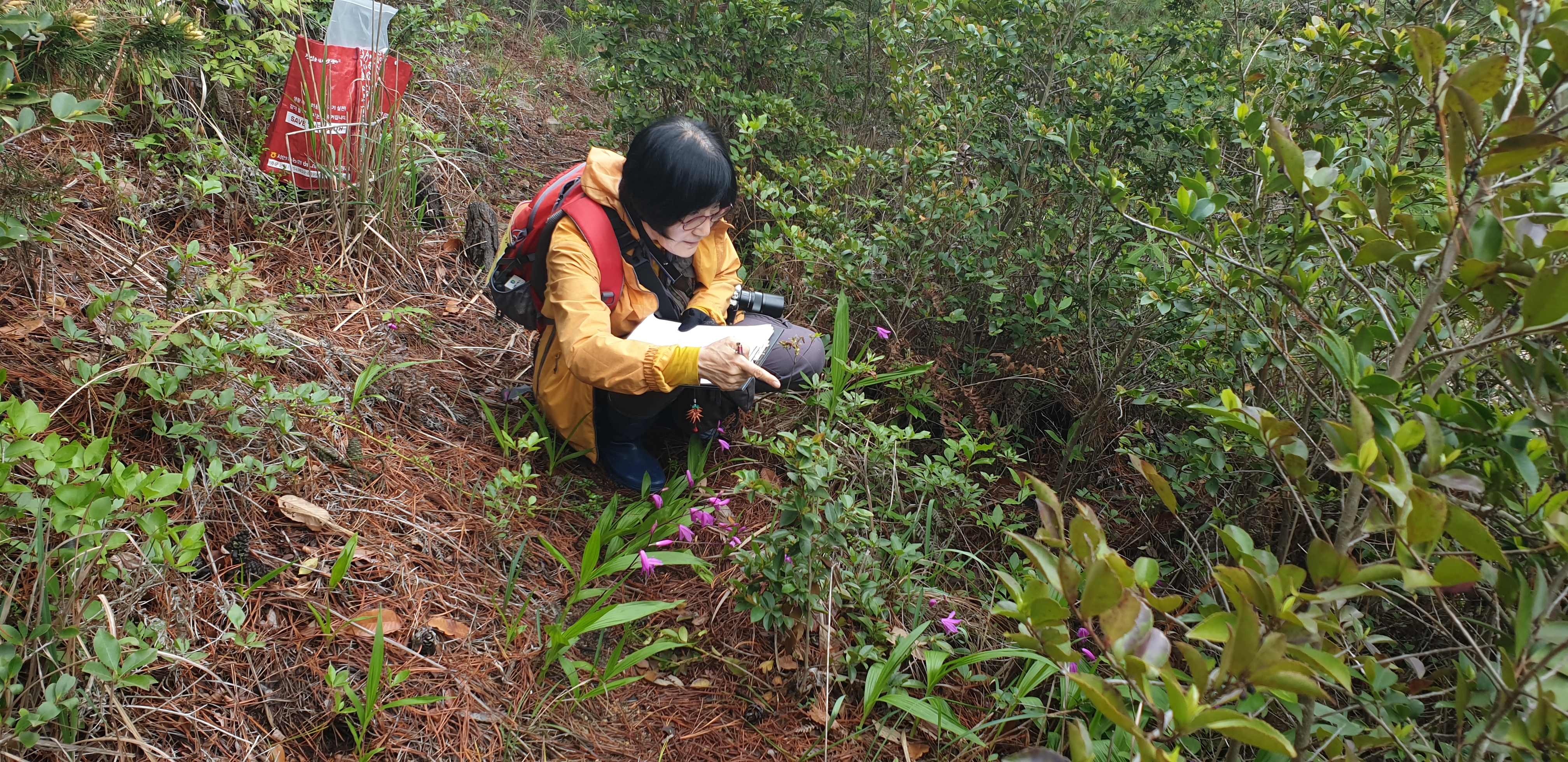현장에서 표본을 만들기 적당하게 손질까지 하여서 채집봉투에 담느라 시간이 좀 걸리긴 했다.