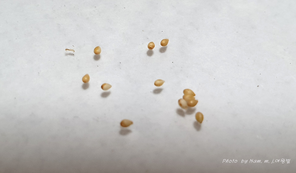 압착하여 건조가 되니 열매가 터져서 종자까지 확인할 수 있었다.