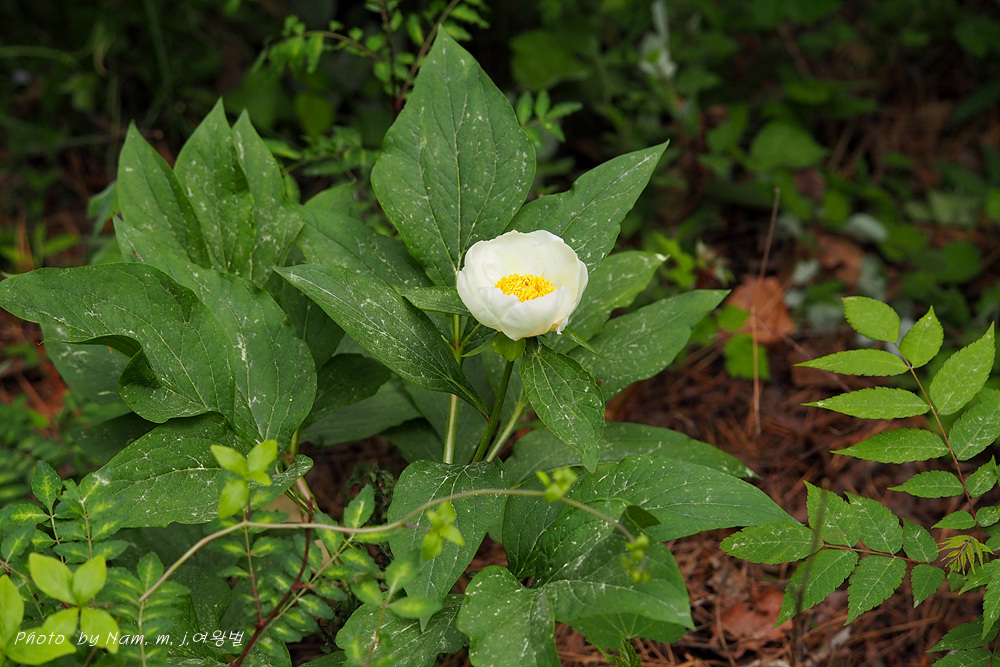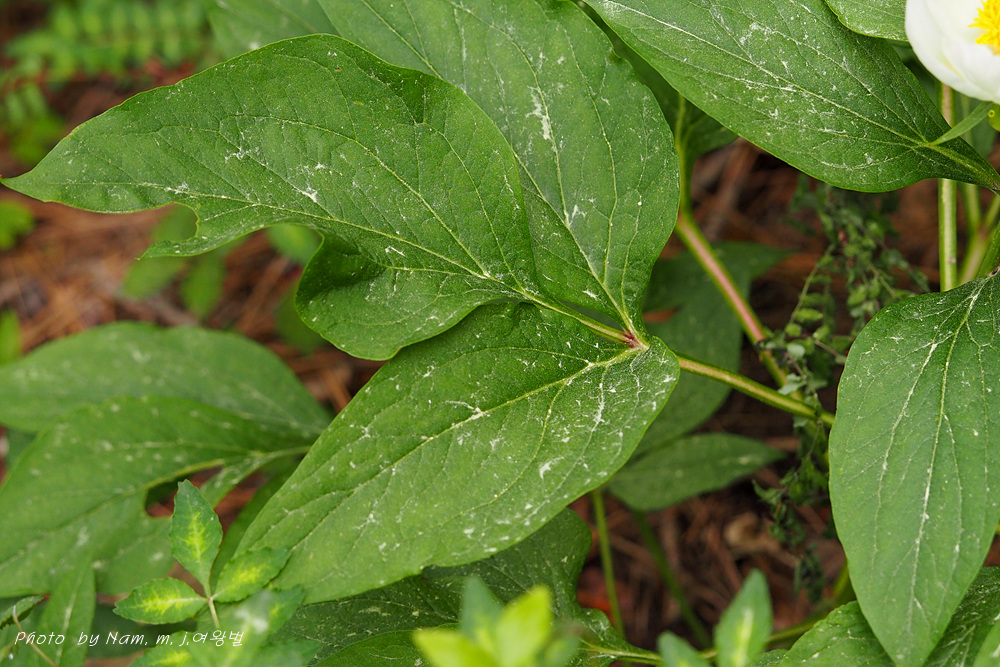 백작약과 달리 정소엽의 아랫부분이 엽축으로 날개처럼 흘러내리는 점과