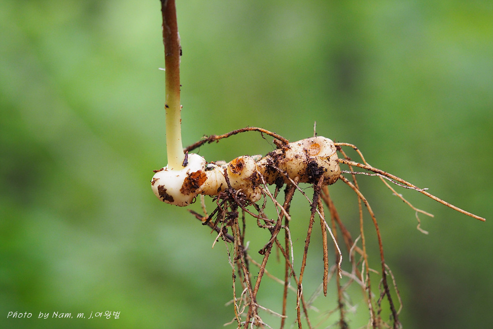 꽃차례 자루가 길게 나와서 여러 개의 꽃을 다는데 뿌리 마디가 짧아서 염주처럼 생겼다.
