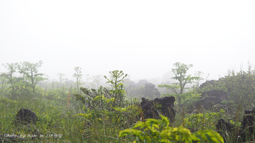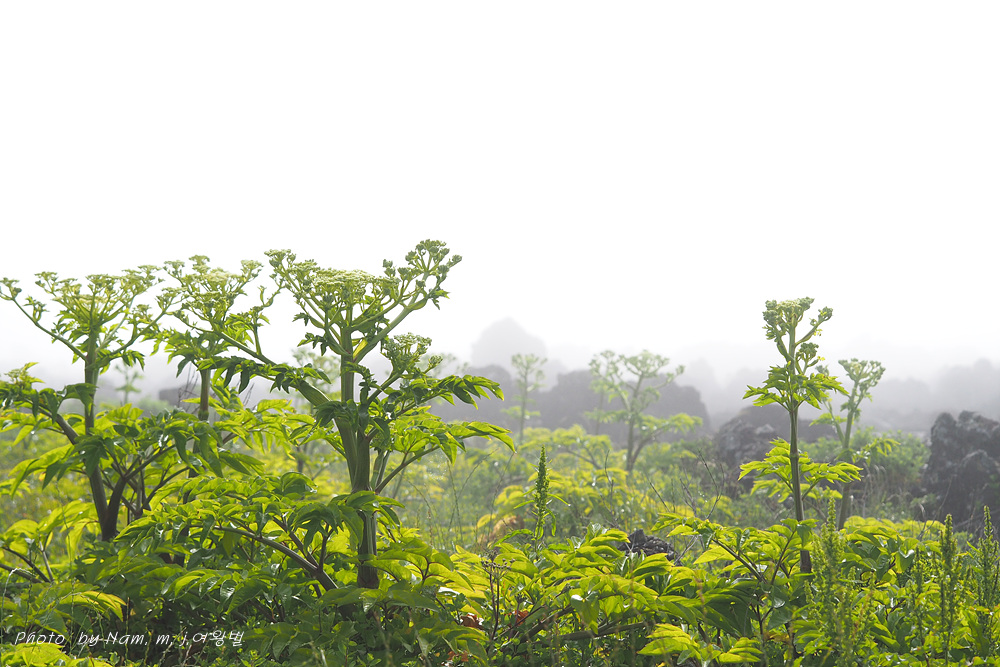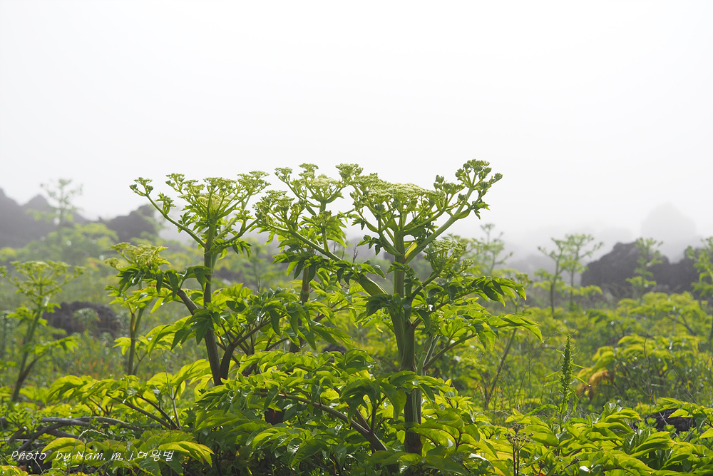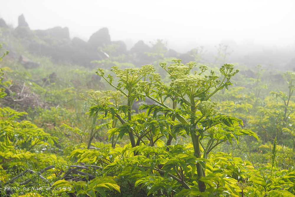우렁한 갯강활의 자태도 해무 속의 해안 바위와 어울려서 꿈길을 헤매는 듯.