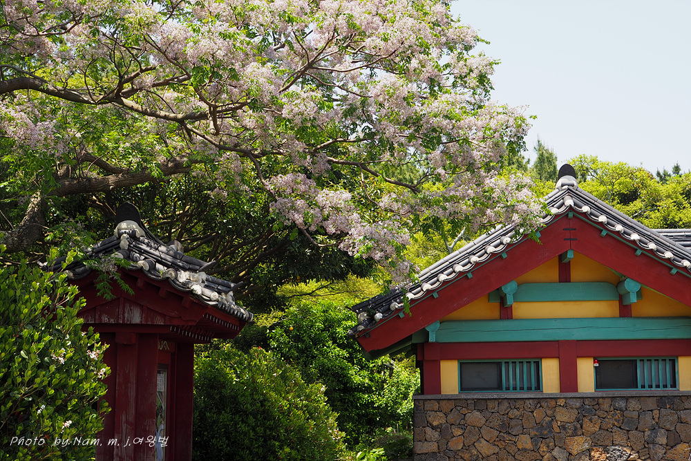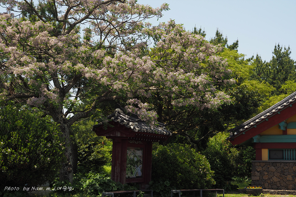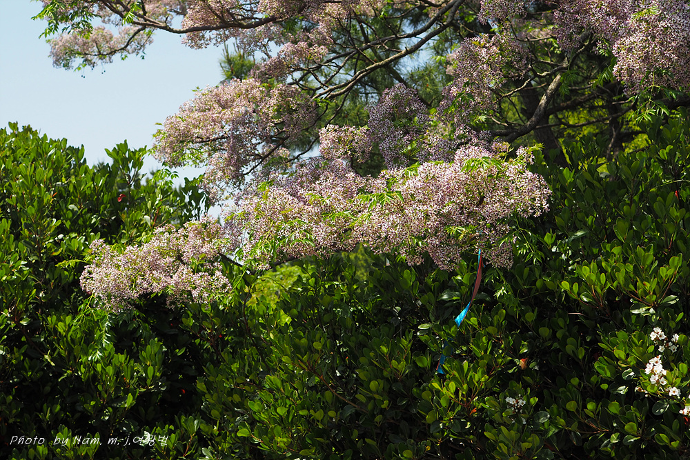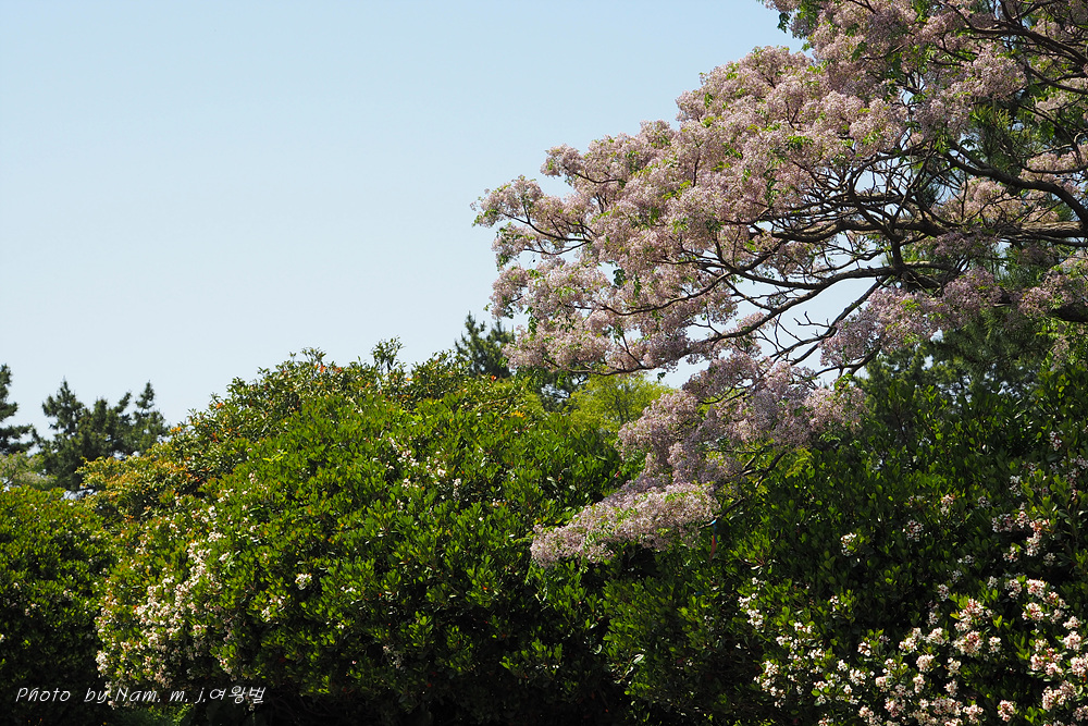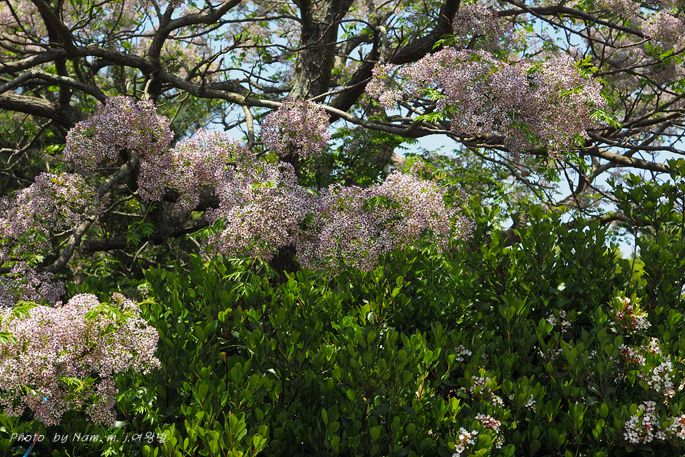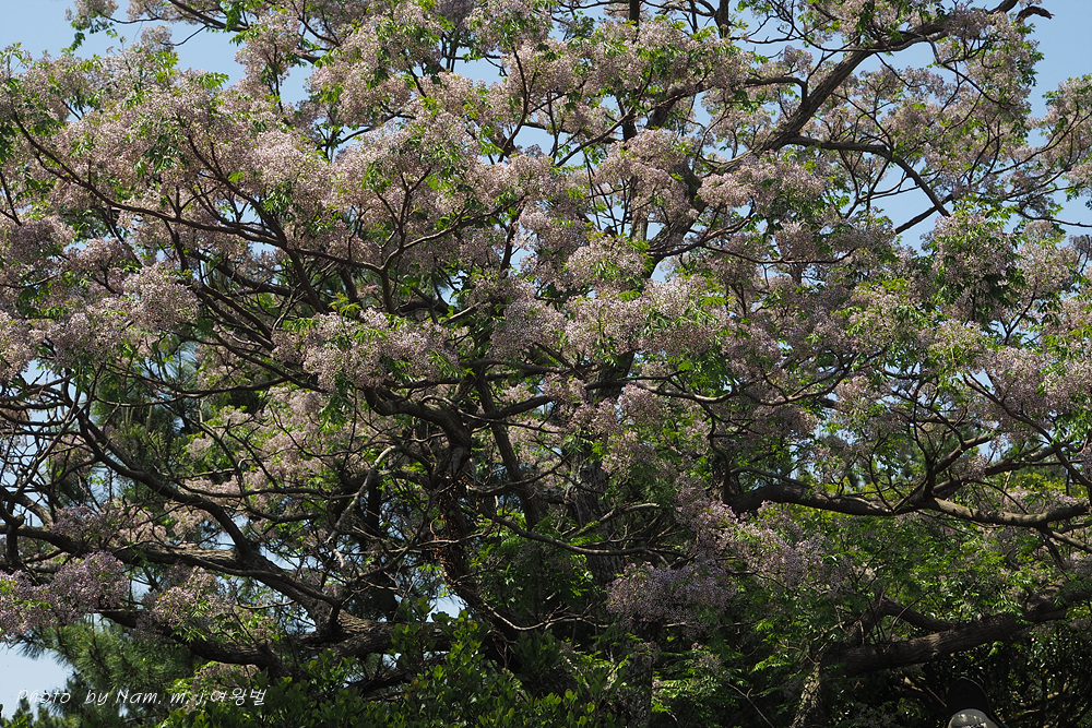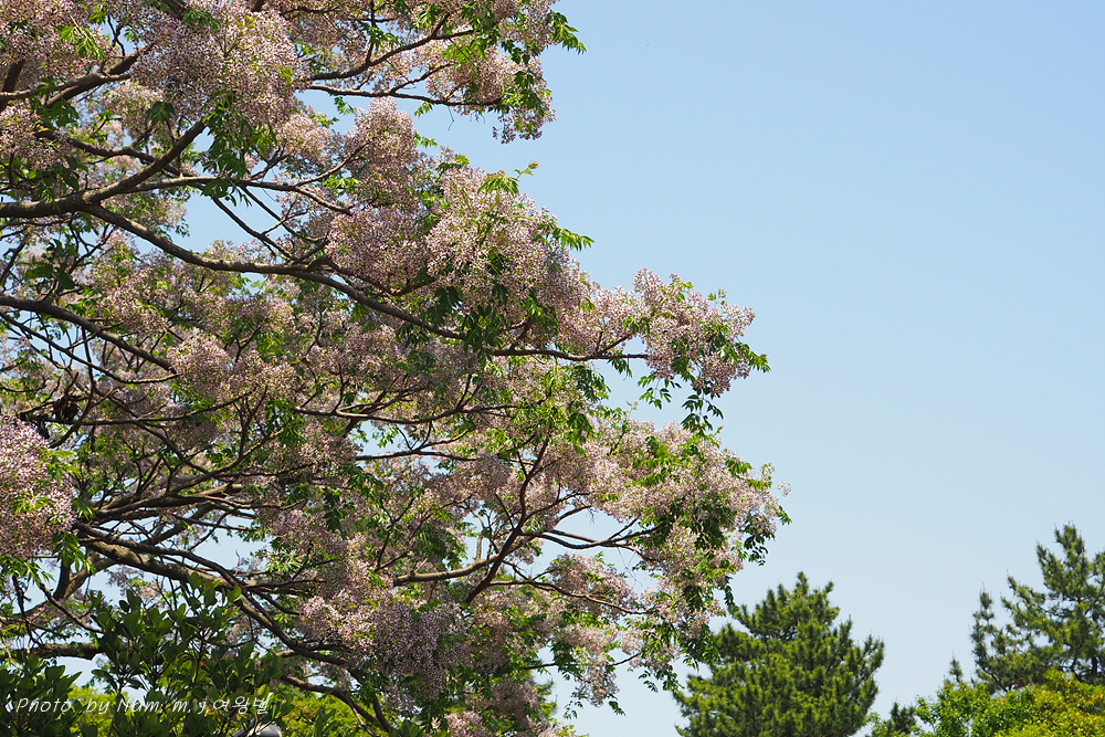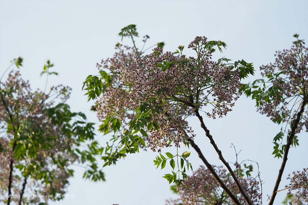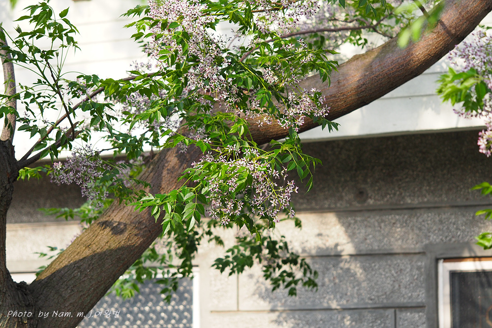 풍성하게 꽃을 피운 멀구슬나무가 흐뭇한 풍광을 만들고 있다.