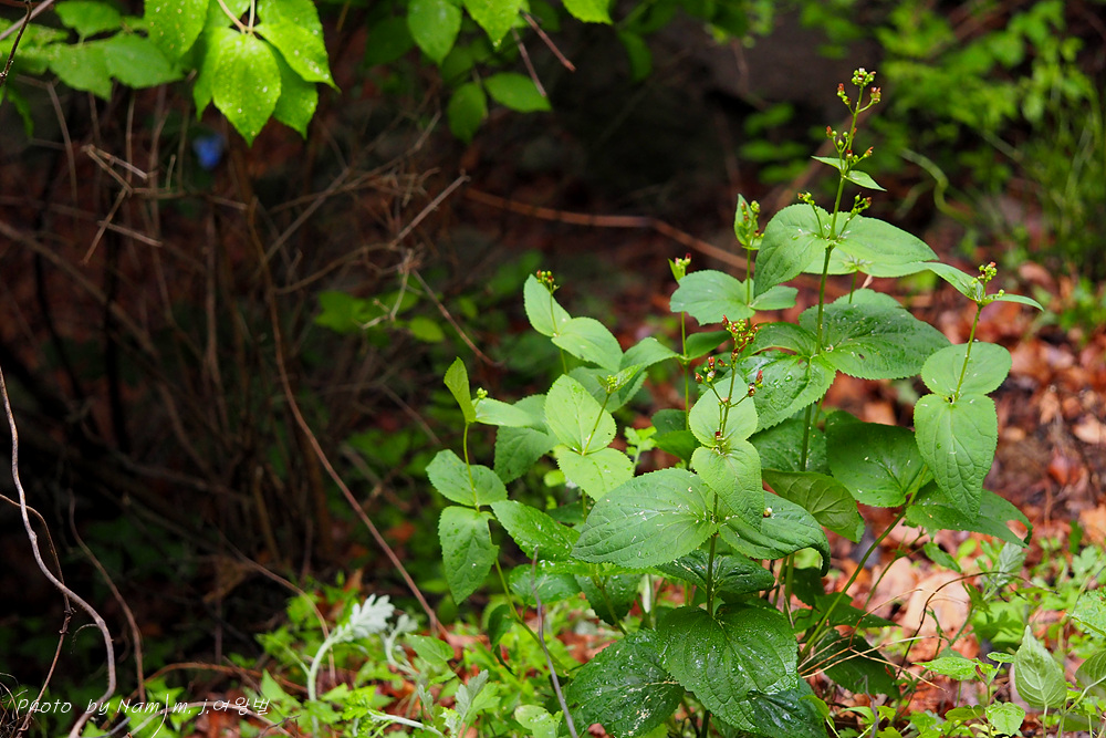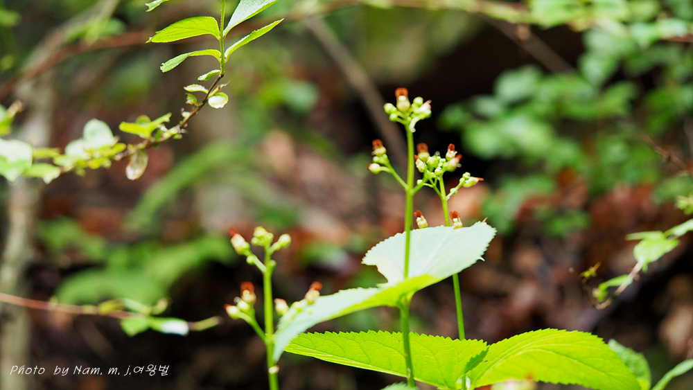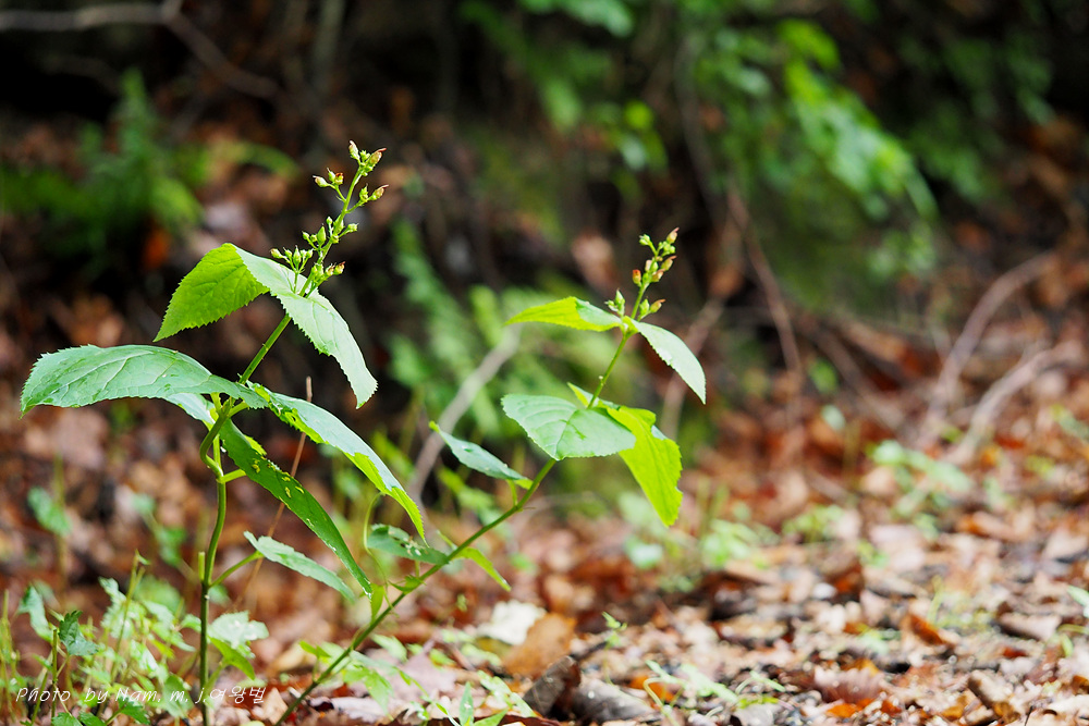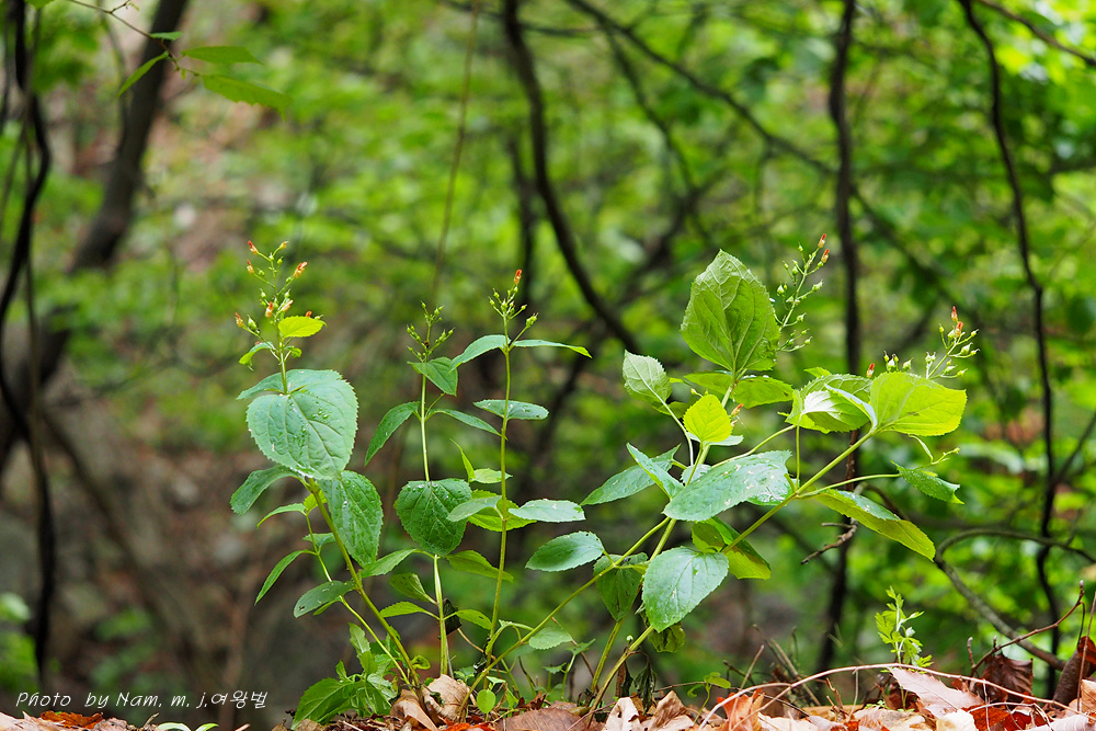 | 통영 미륵산에 자생하는 한국고유종으로 꽃은 7월에 암자색으로 피고 취산화서가 모여 원추화서를 이루며 소화경에 선모가 있고 화서 전체에 잎이 많다. 서는 짧고 거의 두상으로 모이며 잎에 짧은 3각형의 톱니가 있다 |