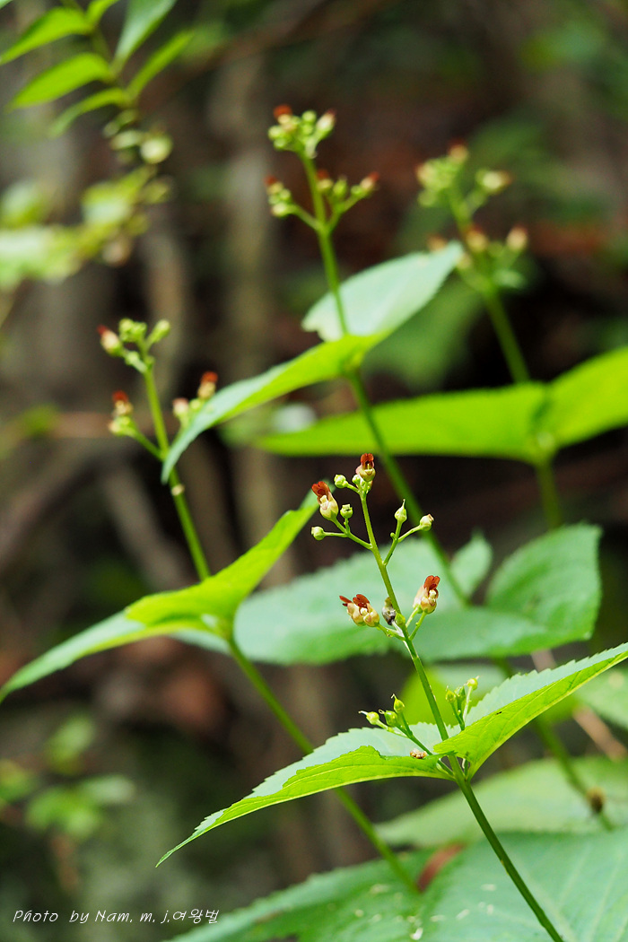 7월에 개화하며, 특히 꽃차례가 뭉쳐 있어서 두상에 가깝다는데 이 곳의 녀석은 꽃차례가 짧지만 원추화서란 말시.