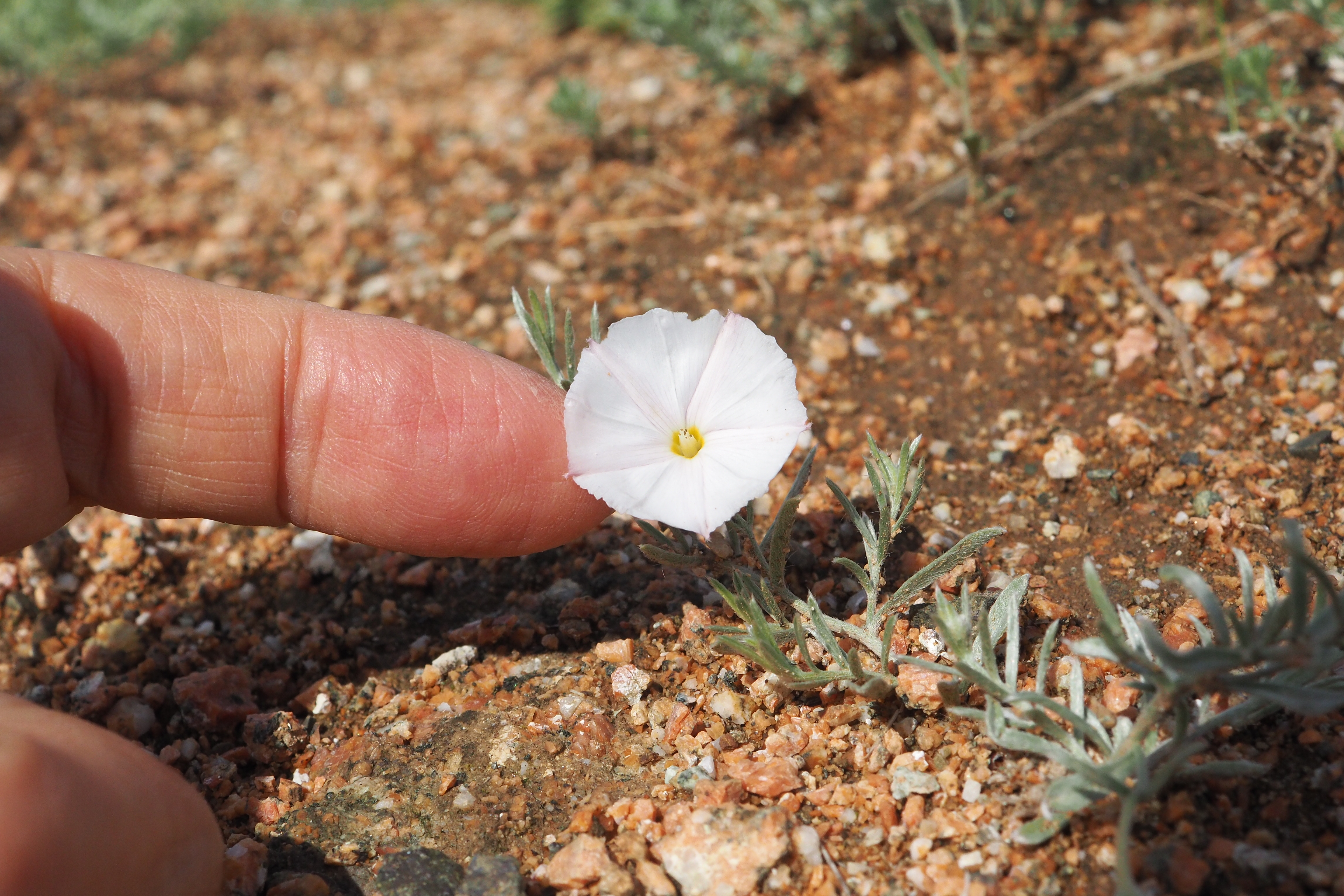 꽃이 손톱만한 크기의 메꽃이다. 잎과 줄기에 털이 뽀얗다.