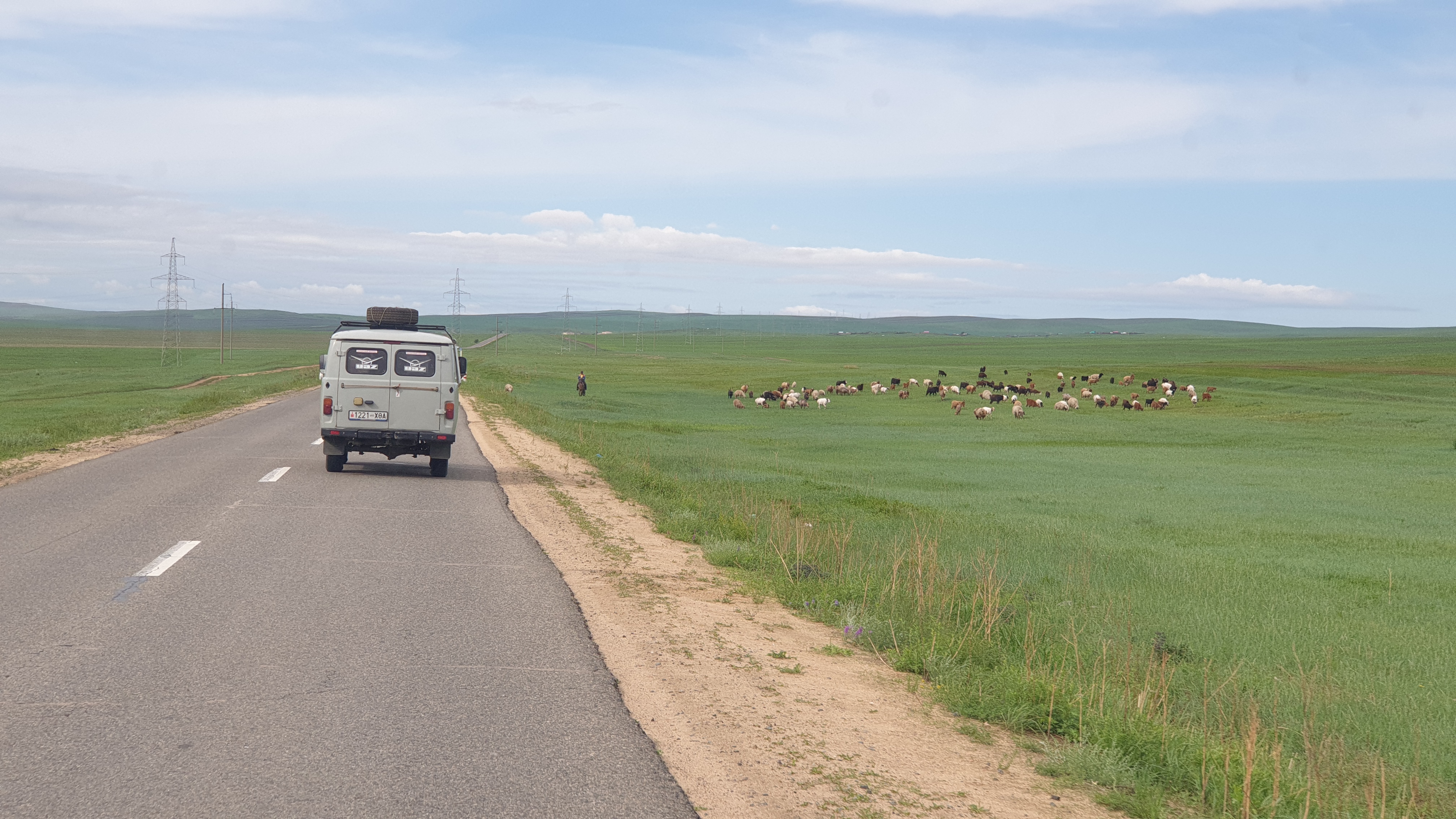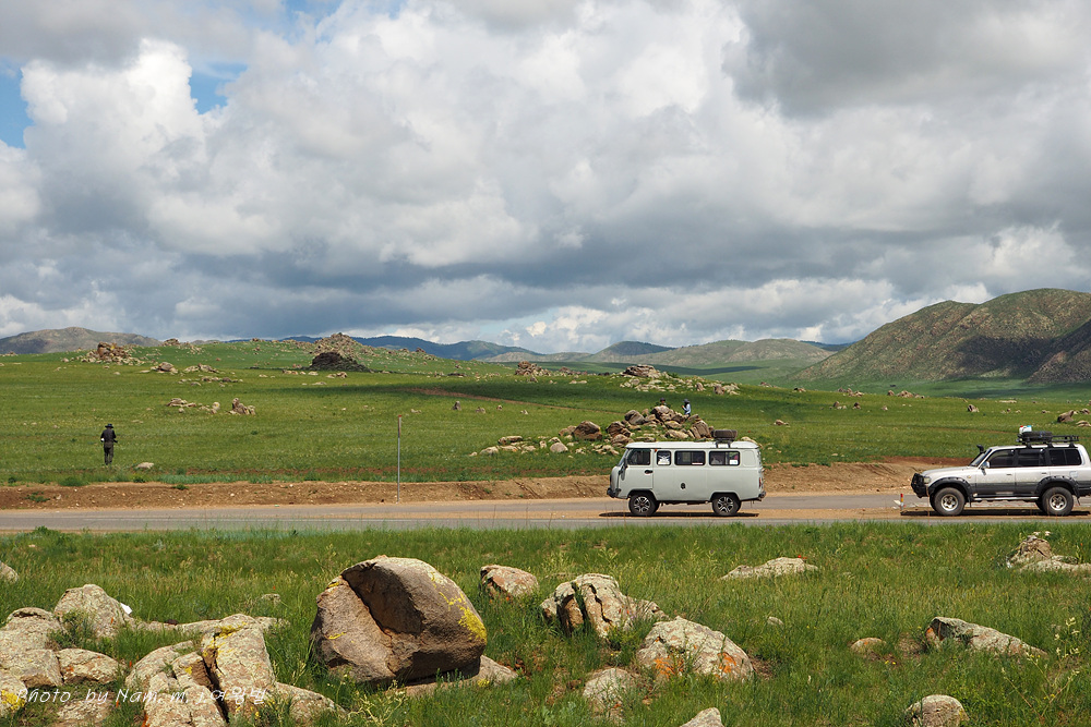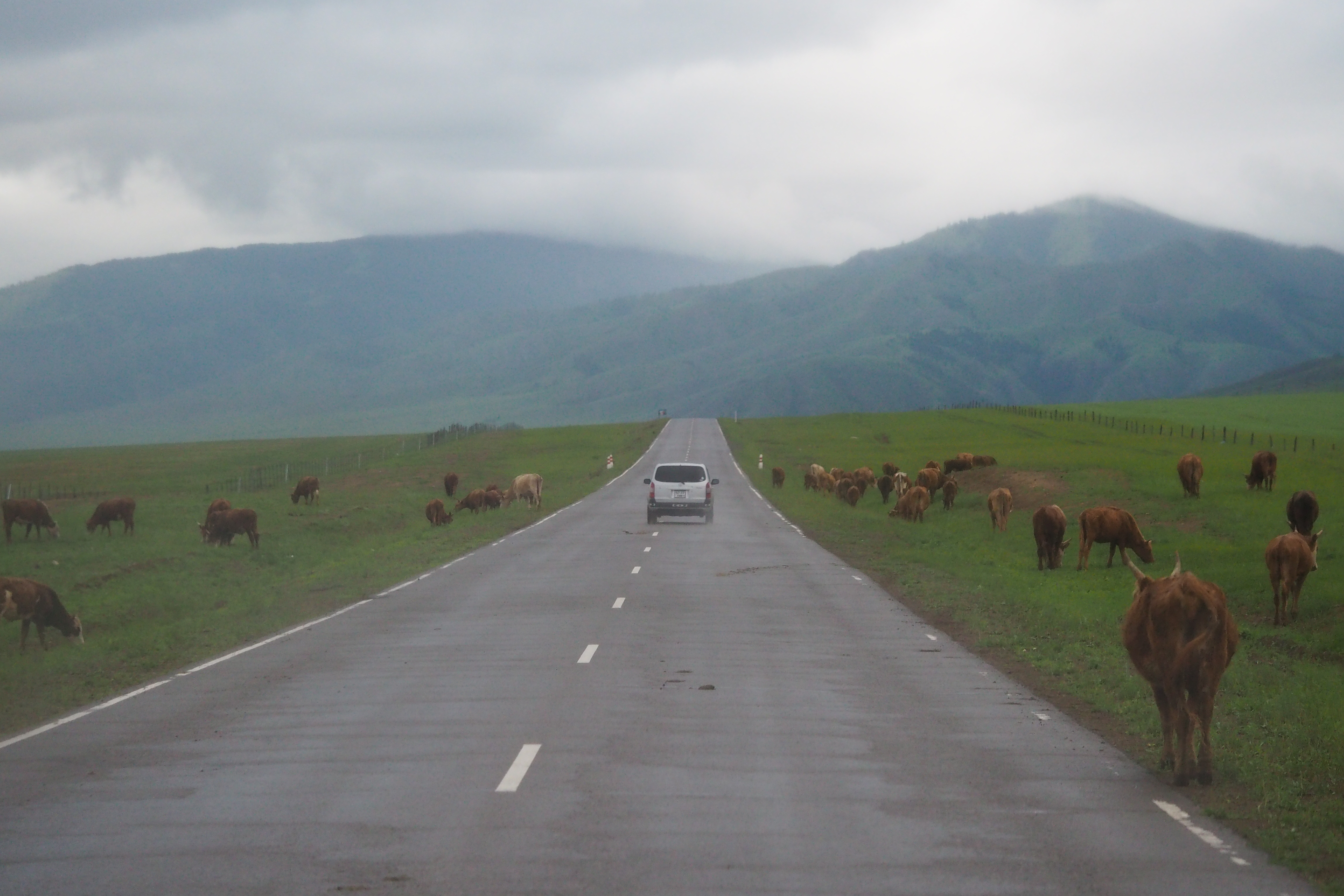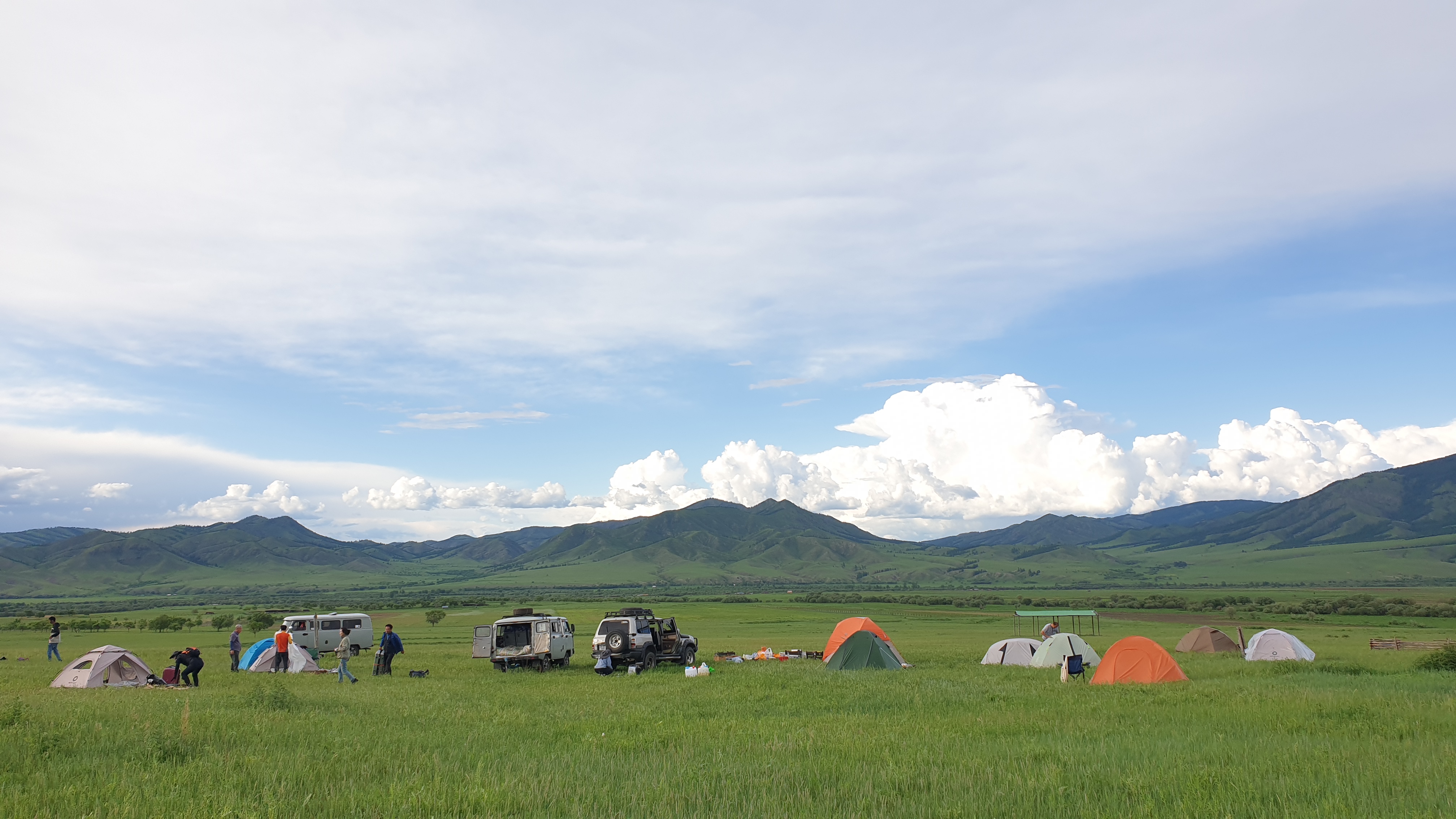 다르항에서 400여 km 를 바쁘게 달려서 도로변에서 조금 떨어진 편평한 초지에 차를 세우기로 했다.