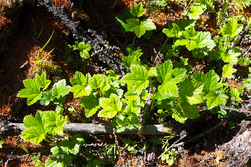 한 뼘도 안 되는 키의 까치밥나무속 녀석의 잎이 무리를 이루고 있다.