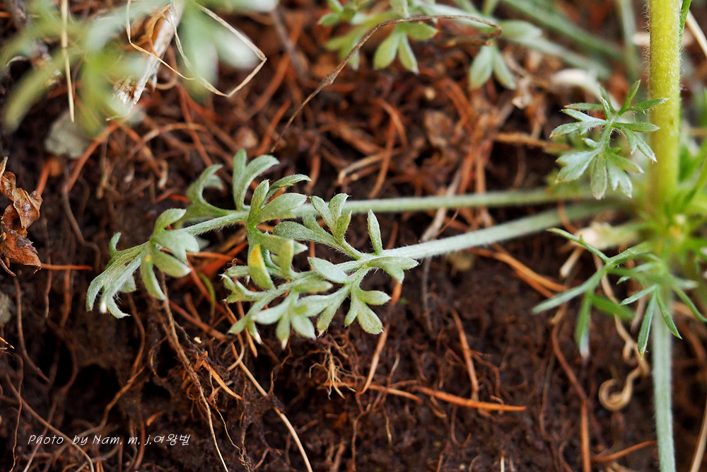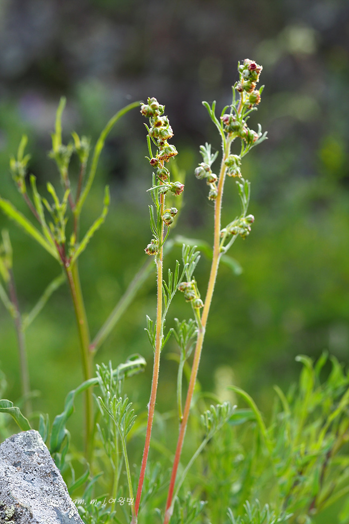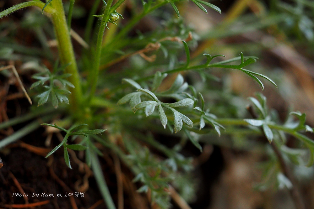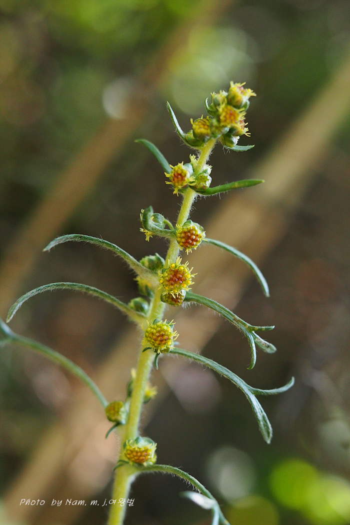 잎이 가늘게 갈라진 쑥속 녀석이 귀엽게 꽃을 피웠다.