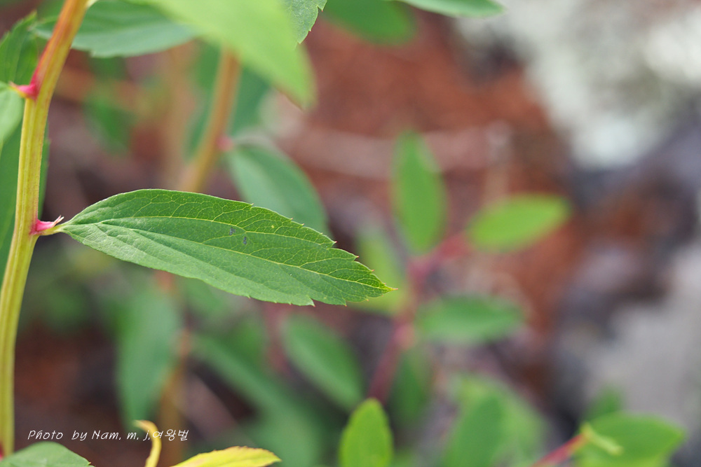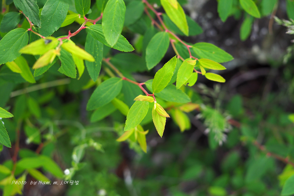 작년에도 산지 바위지대에서 만났던 긴잎조팝나무 Spiraea media(699p) 로 보인다.