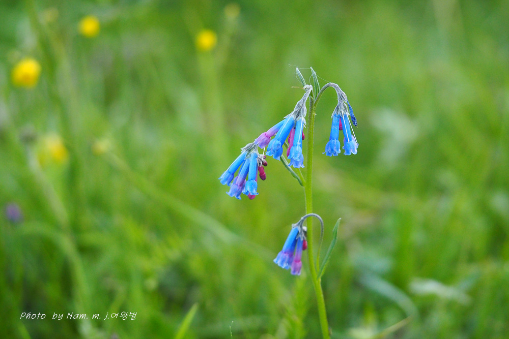 호수 건너편 숲에서 만났던 갯지치속 Mertensia davurica (234P)녀석이 여기도 보인다.