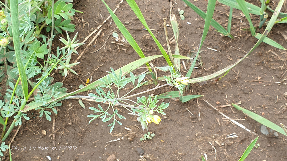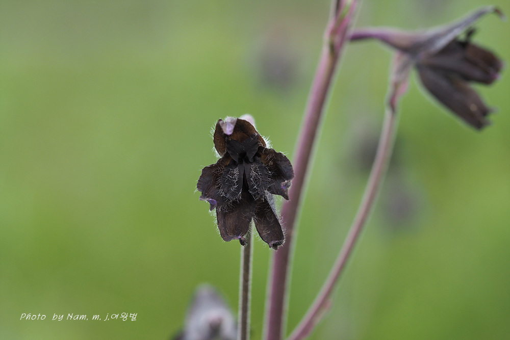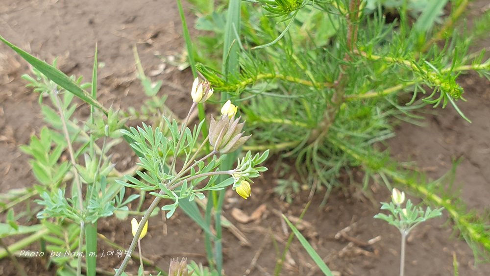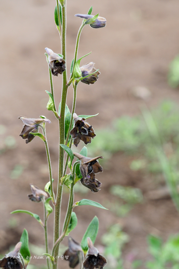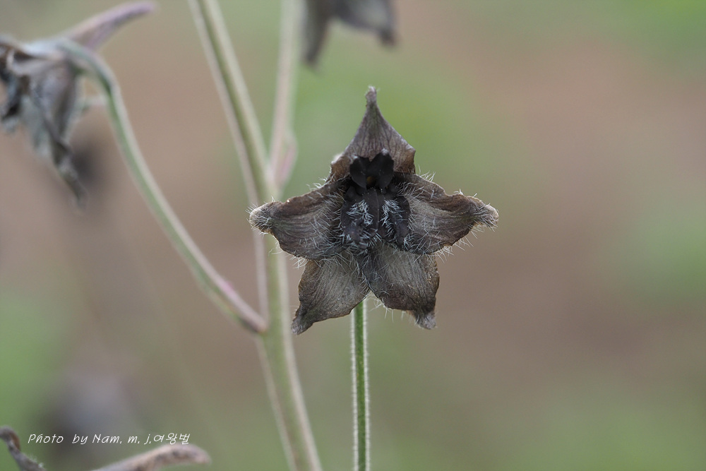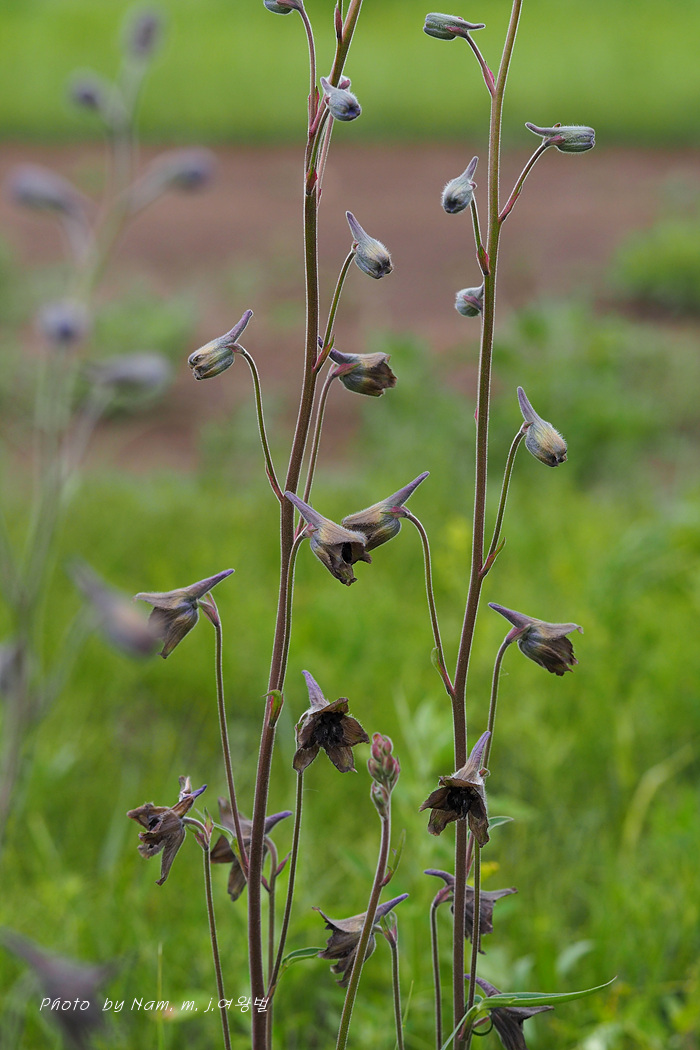 길 옆에 검은색 제비고깔속 Delphinium triste 가 활짝 개화를 하고 있었기 때문이다