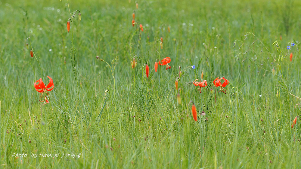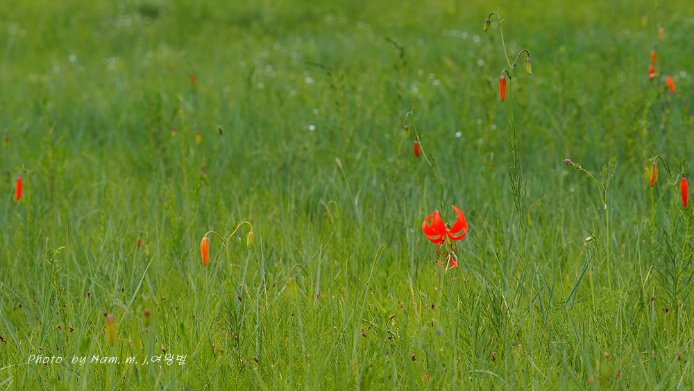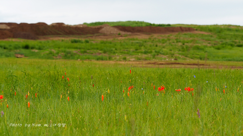 초지에 붉은 큰솔나리 군락을 보고 차를 세우기로 하였다.
