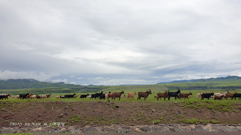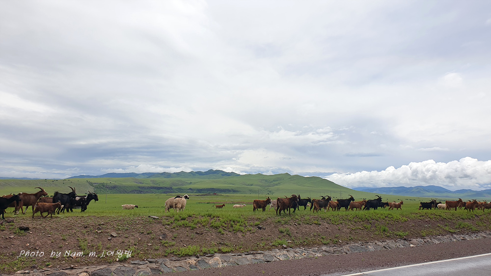 염소 떼들의 도로 횡단에 막혀서 또 차를 세운다