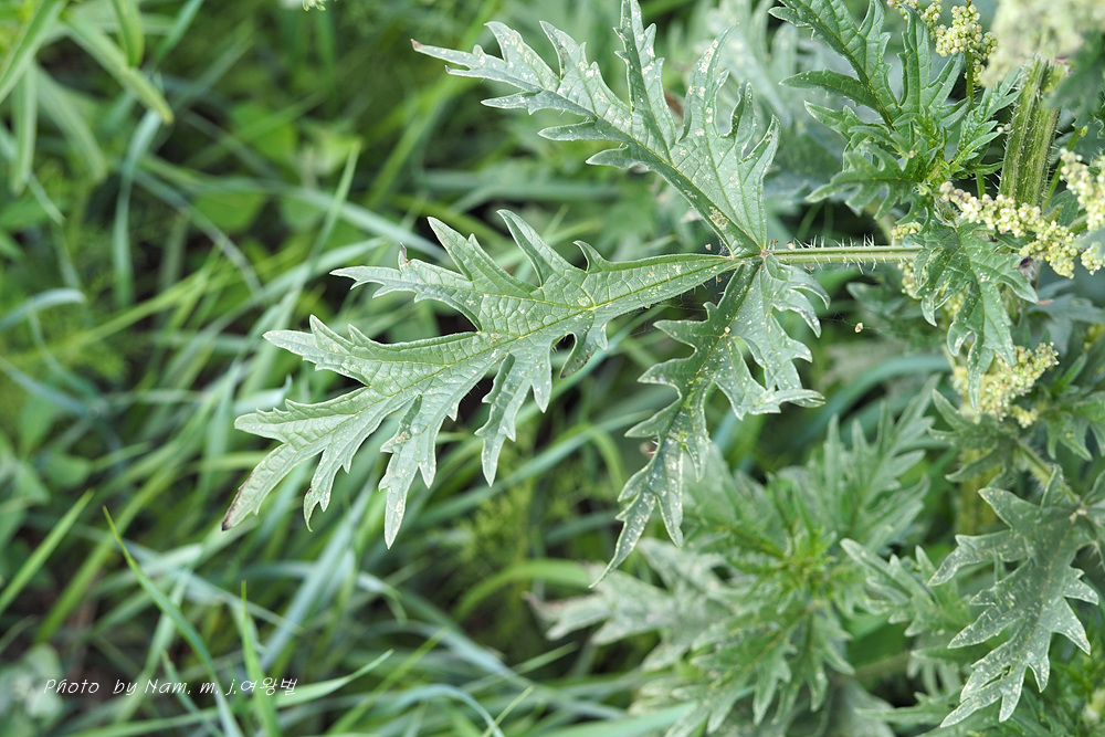 Urtica cannabina (728p)로 확인하였다. 김찬수 저 알타이도감에는 삼잎쐐기풀(119P)로 기록되어 있다..