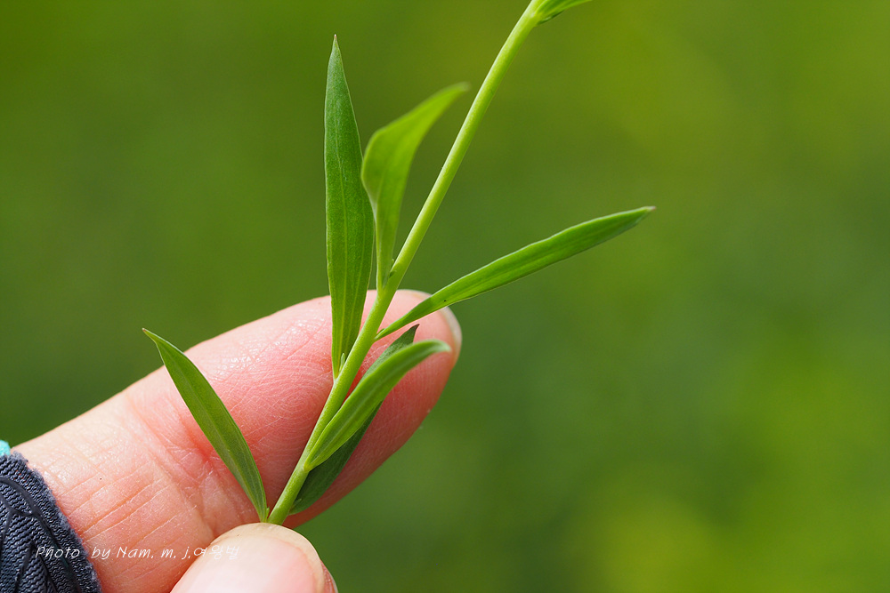 가느다란 잎과 작은 체구에 비하여 큰 꽃을 달고 있는 대갈장군이다.