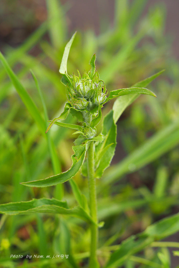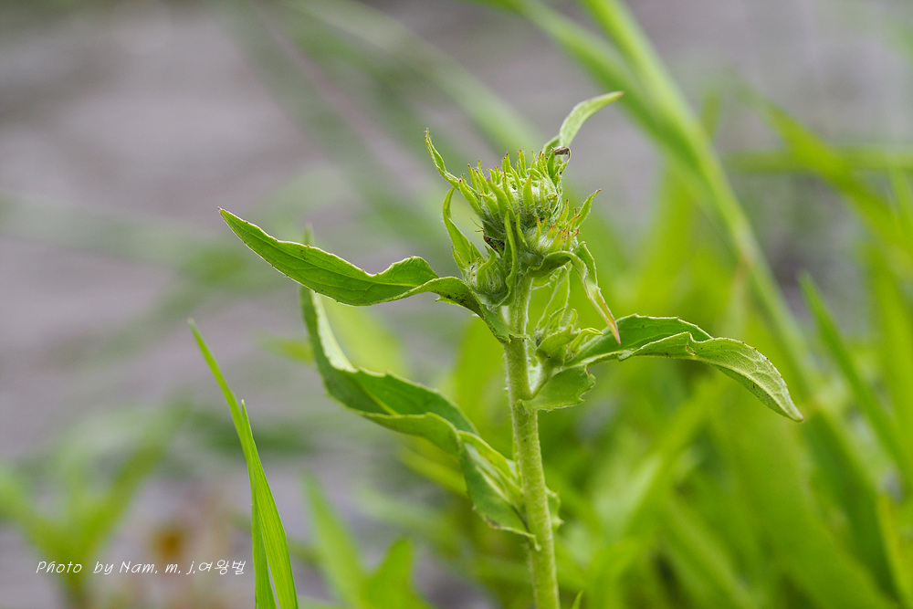 물고랑 옆에 서 있던 이 녀석은 금불초 종류로 보인다