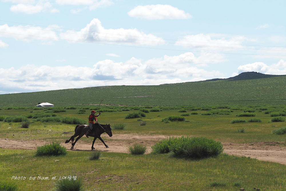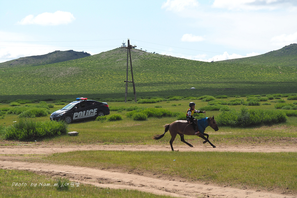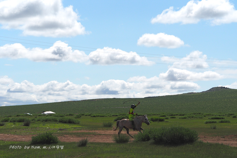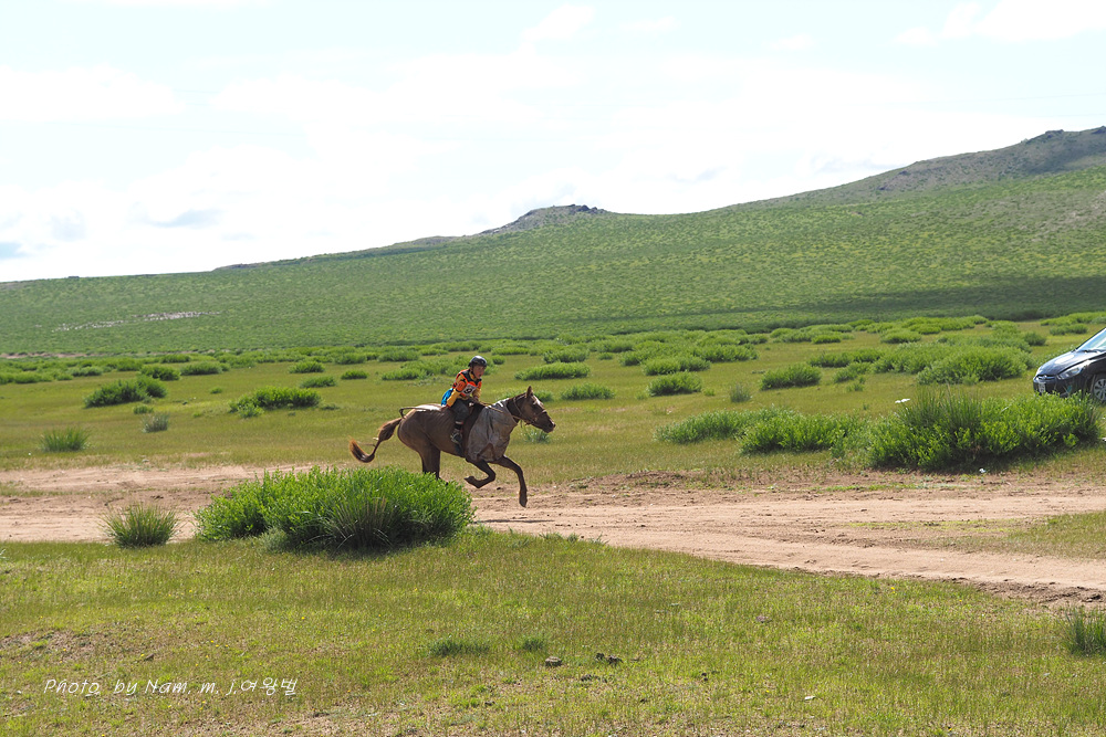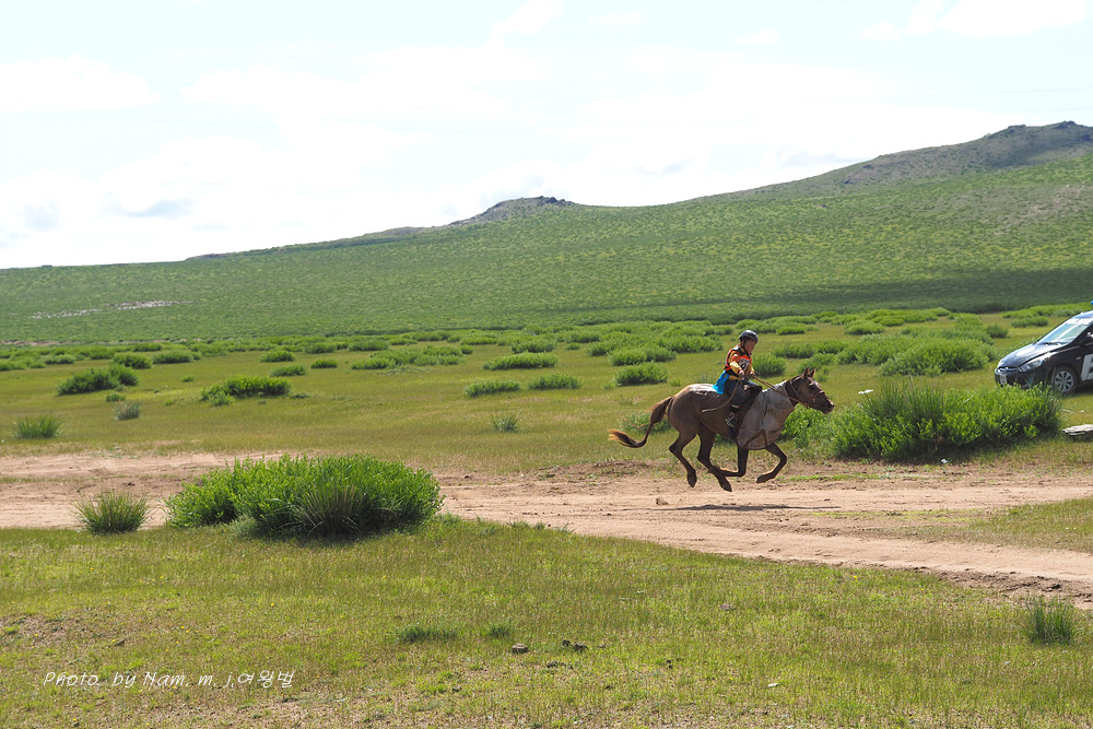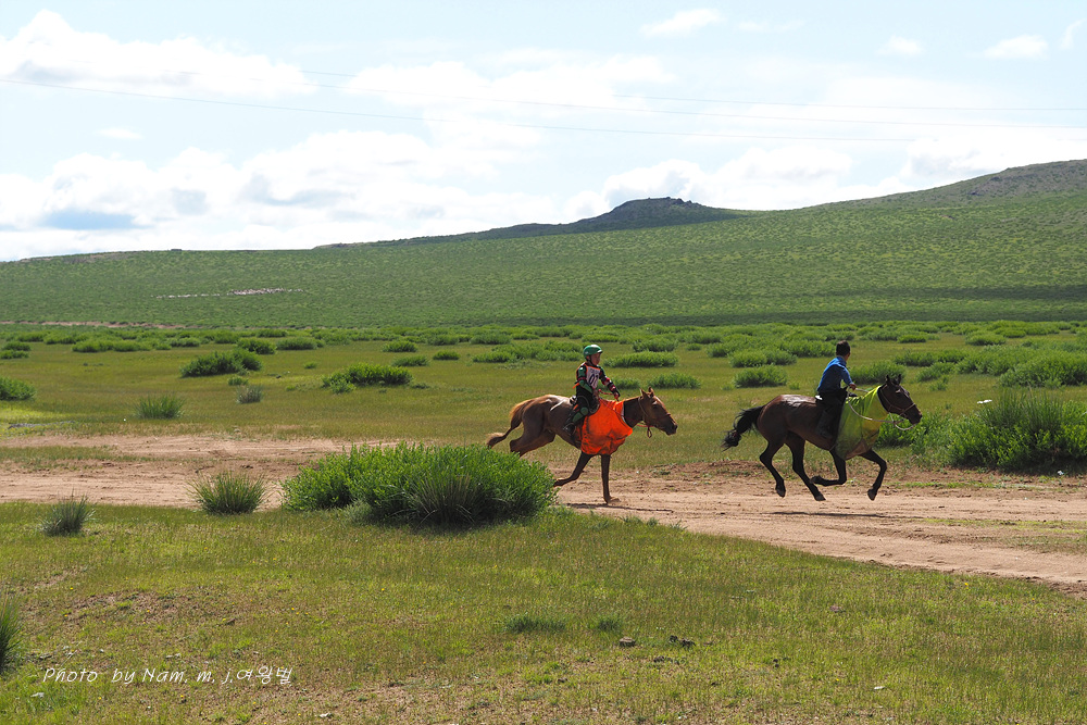 몽골의 가장 큰 축제 나담의 3대 경기 중 초원에서 진행되는 말타기 경기가 진행 중이었던 것이다.