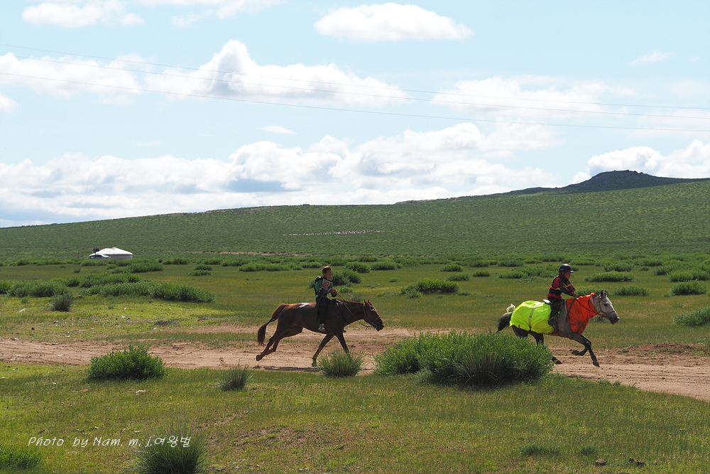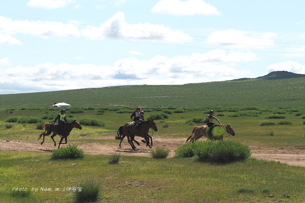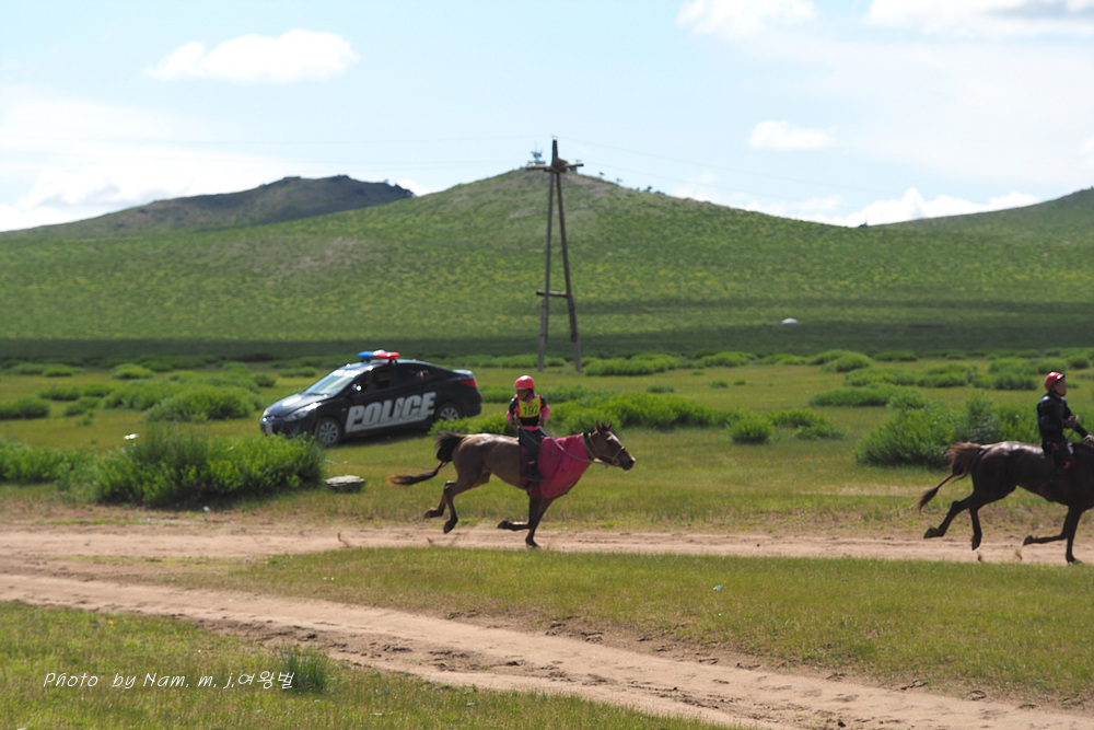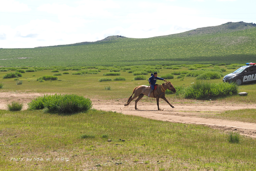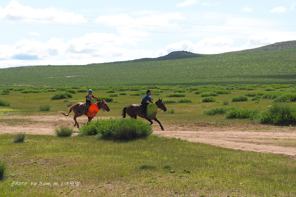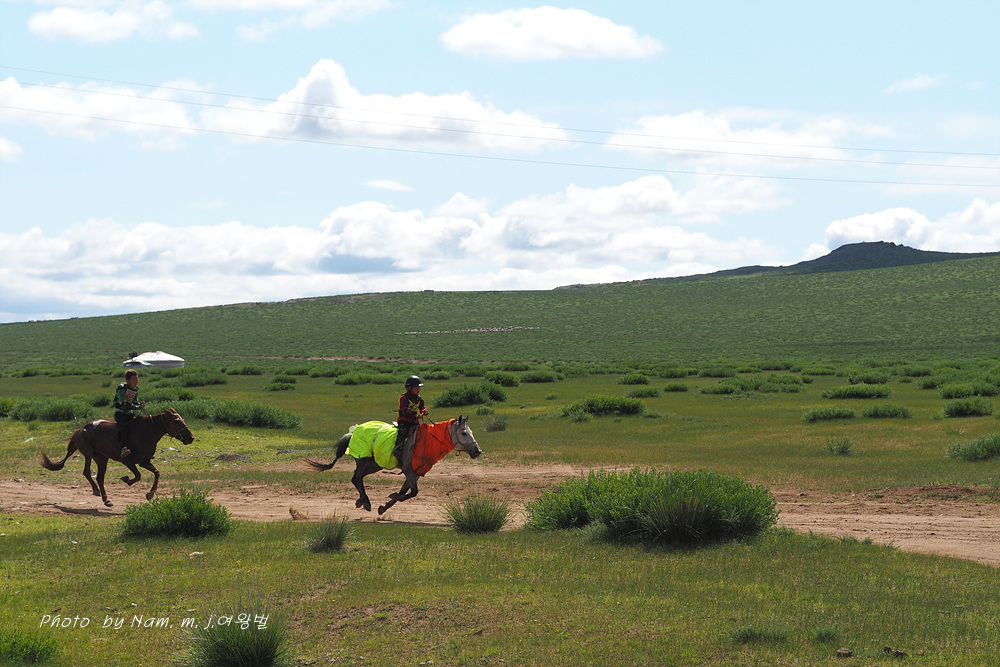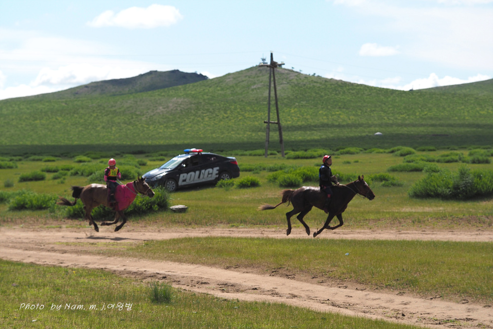 몽골의 가장 큰 축제 나담의 3대 경기 중 초원에서 진행되는 말타기 경기가 진행 중이었던 것이다.