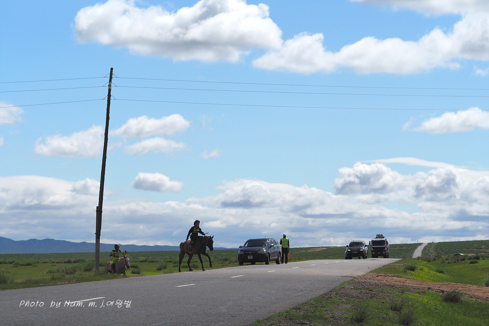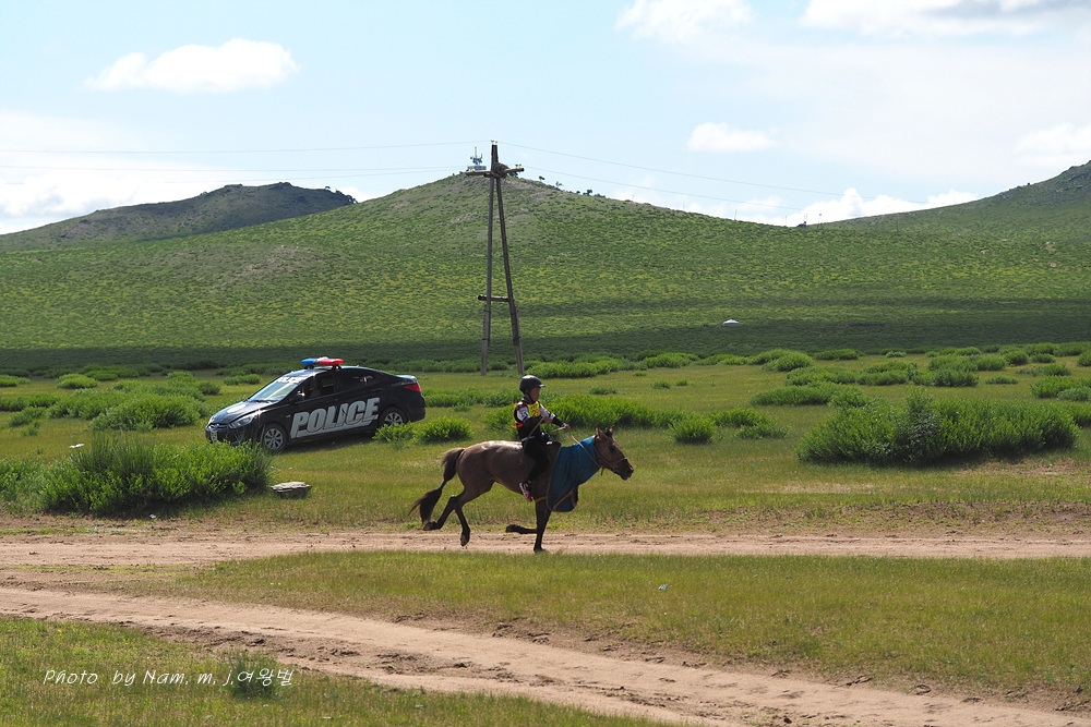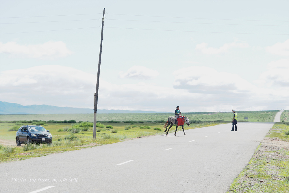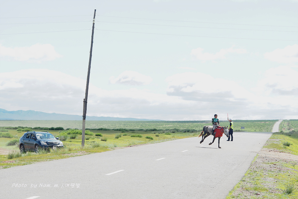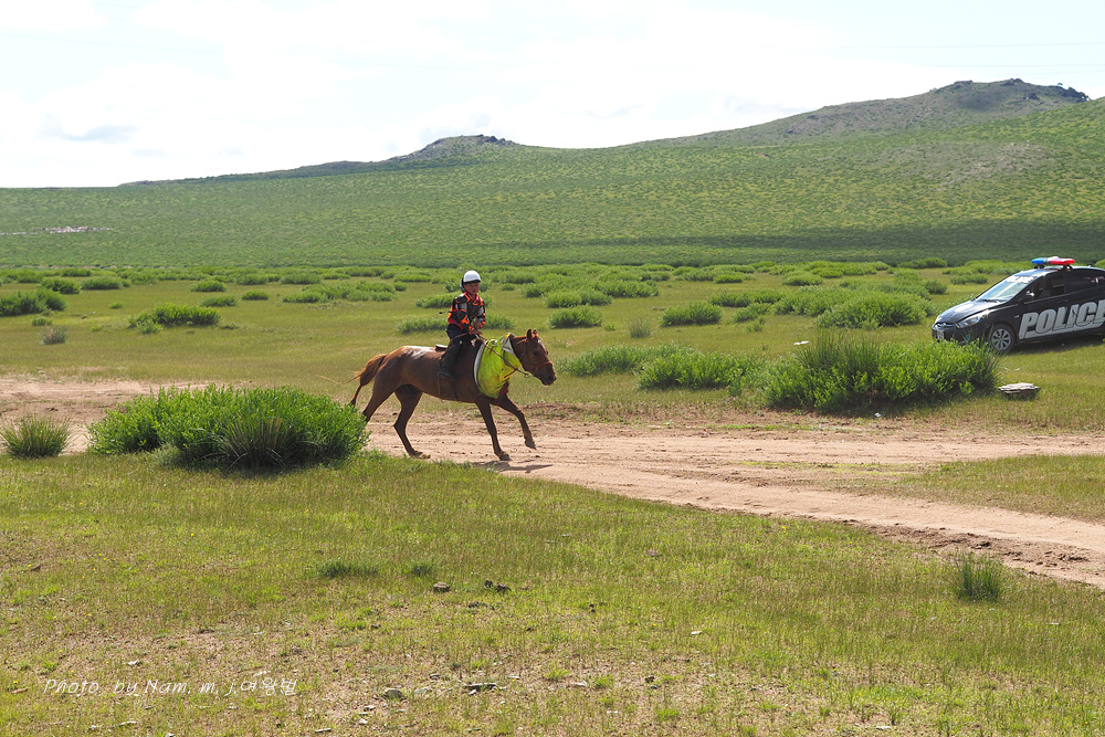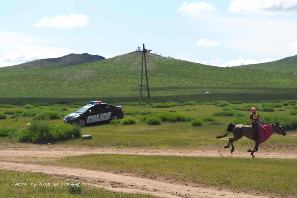 몽골의 가장 큰 축제 나담의 3대 경기 중 초원에서 진행되는 말타기 경기가 진행 중이었던 것이다.
