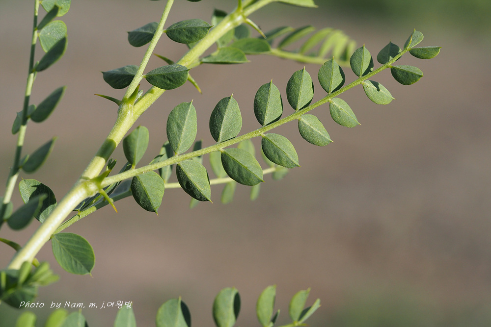 작은잎이 10~20개로 많고, 길이는 1cm 미만이며, 턱잎은 바늘 모양으로 길이 1.5~5.0mm다