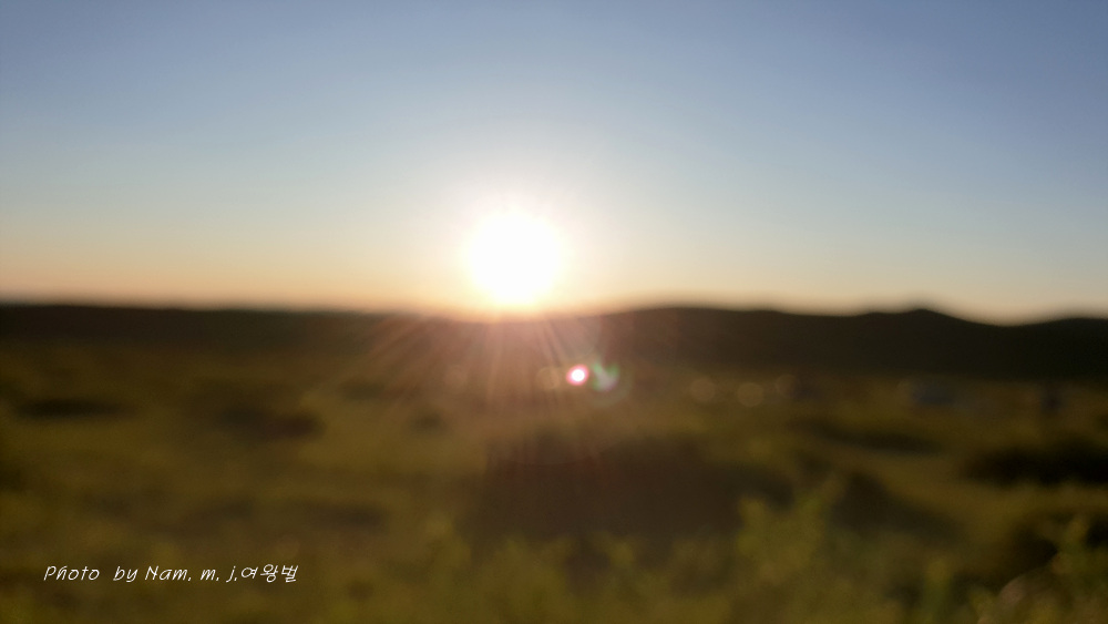 5시 30분 경 동쪽 구릉 언덕 너머로 아침 해가 떠오른다.